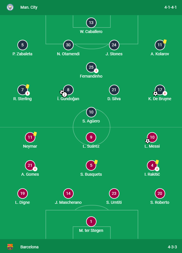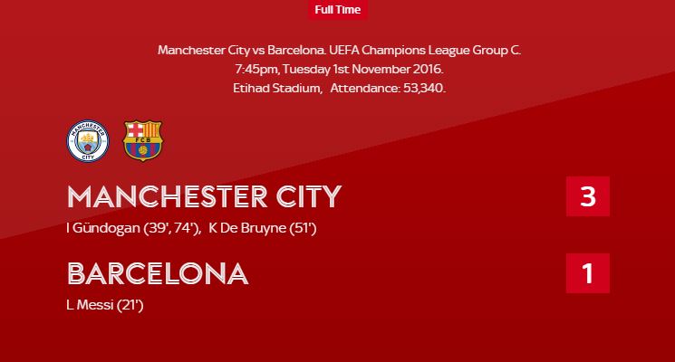 결국은 3:1로 끝났다. 맨시티의 대 바르셀로나 역사상 첫 승리다.