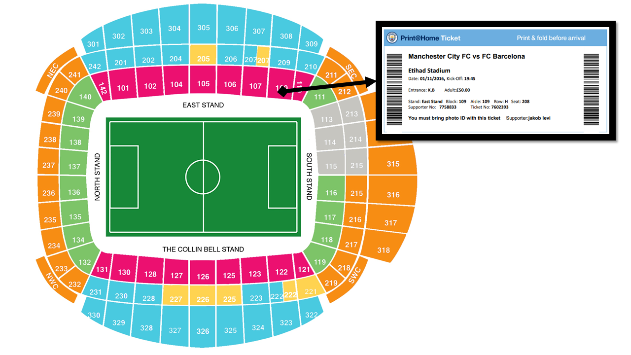 East Stand의 109블럭. H열.