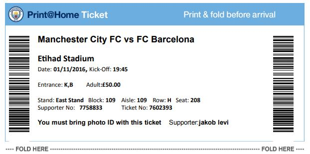티켓을 맨체스터 첫날 YHA Manchester에서 출력했다. 집으로 배송오거나 집에서 인쇄해서 가져가는 Print@home Ticket이다. 티켓 구매대행에서 구입하고 날아온 이 이메일의 티켓 하나로 정말 나는 입장할 수 있는 것일까?