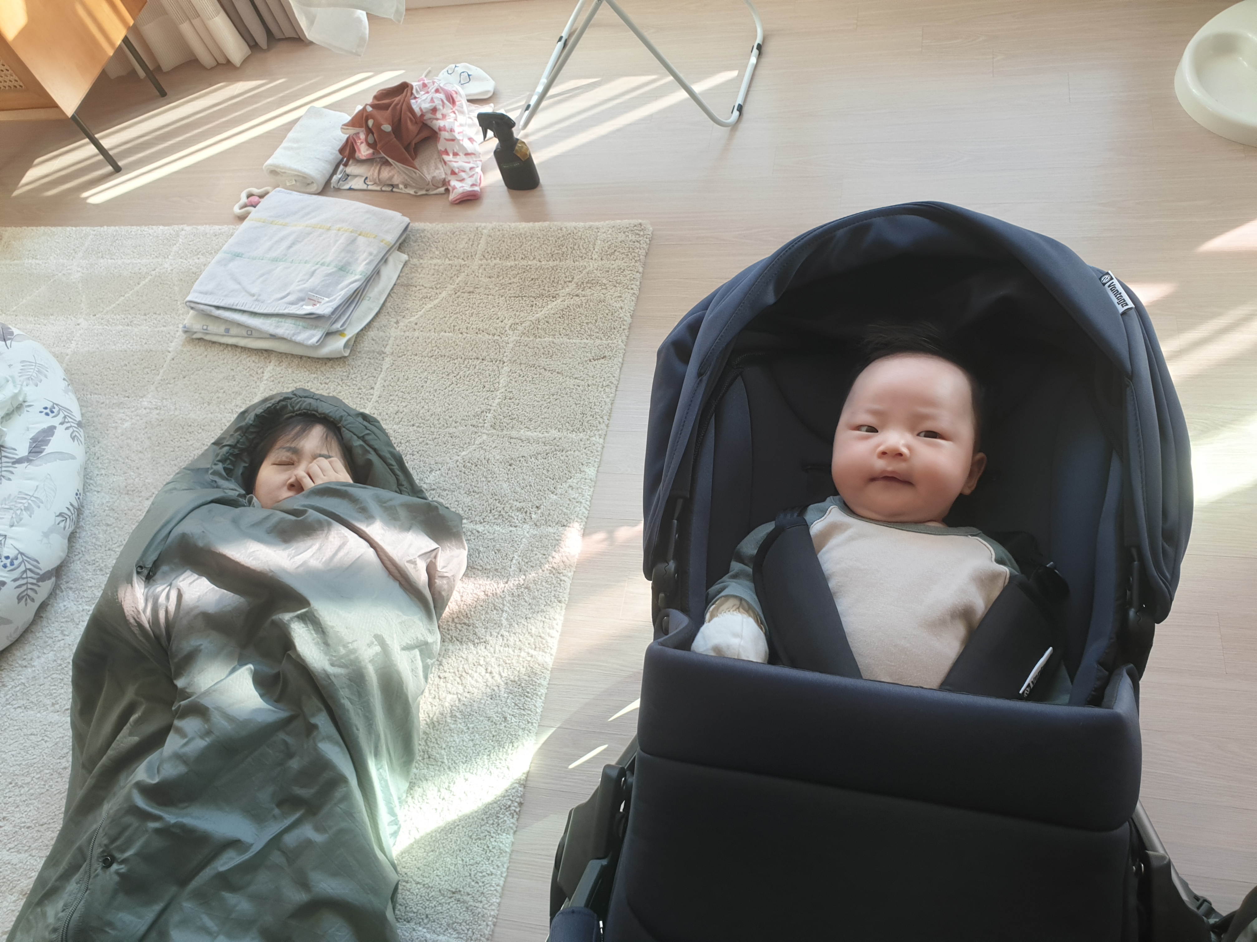당시 틀어져있던 TV는 호두가 보던 육아 유튜브. 그래서 저렇게 무서운 누나가 찍혔구나. 고마워. 호두.