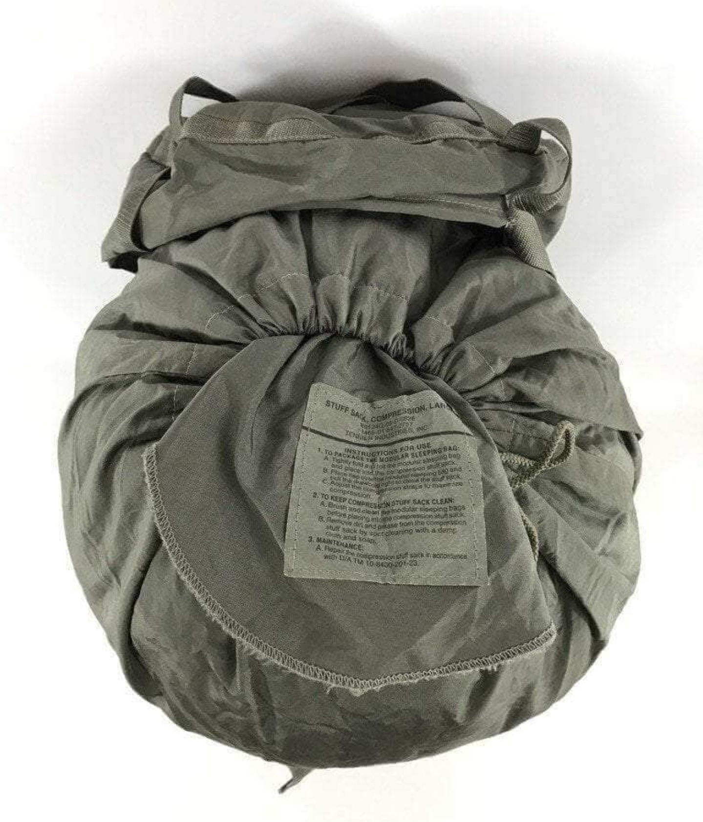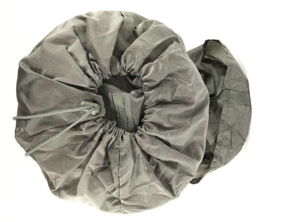 Measures 85 by 28 by 35 Inch. Compress Stuff Sack Constructed of water resistant materials. Compressible to one cubic foot.
