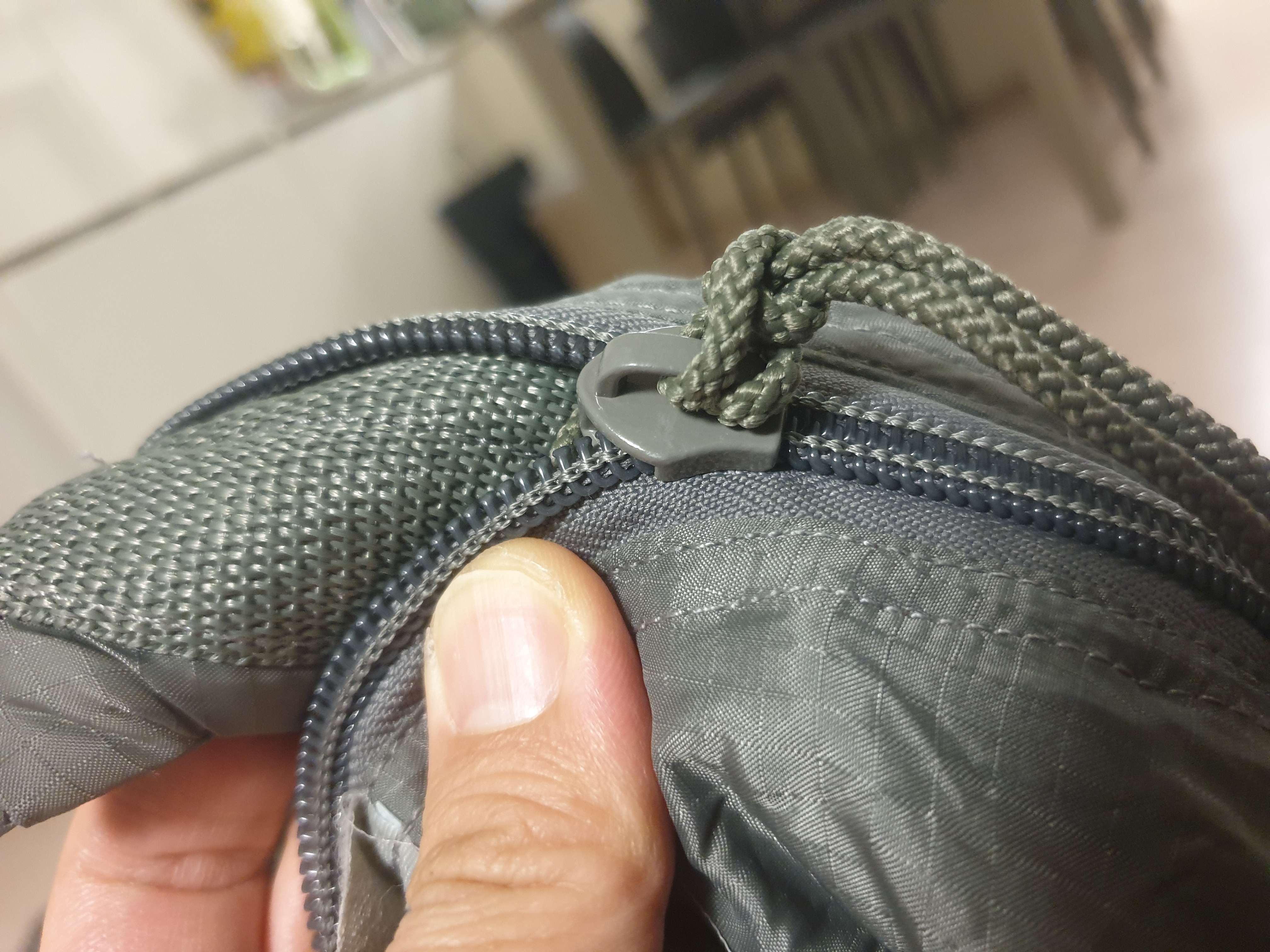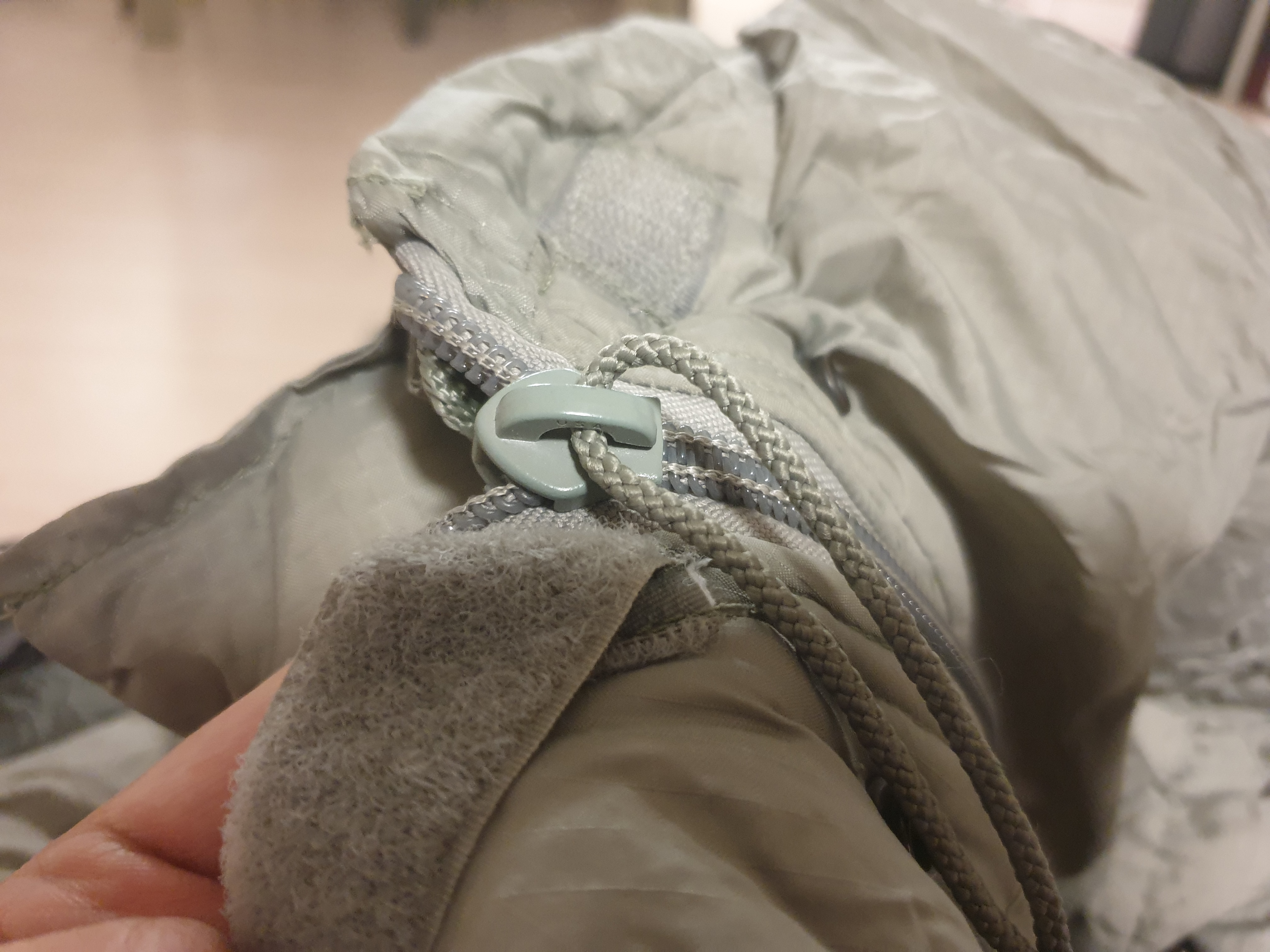 지퍼와 지퍼에 연결된 끈과 플라스틱 손잡이의 상태가 매우 좋다. 과장을 아주 살짝 보태서 아니, 전혀 보태지 않아보면 '단 한번도 사용되지 않은 것 같다.' 이쯤에서 만족도가 매우 높게 상승했다.벨크로는 사용한 흔적이 좀 있지만 마찬가지로 지퍼는 거의 새것과 다름없다.