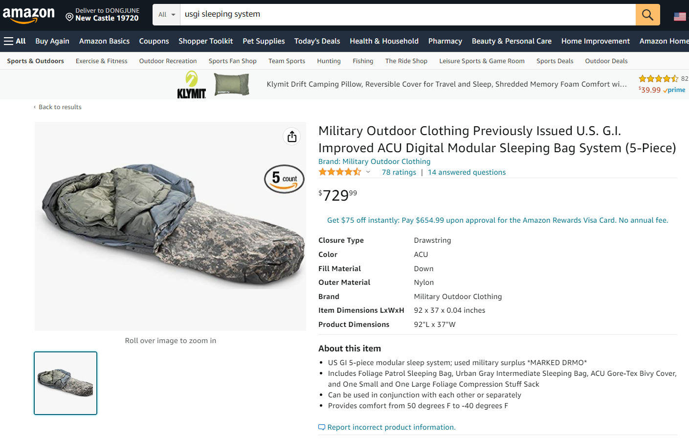 당시 지급받았던 침낭으로 에디터는 두번의 혹한기 훈련과 만 2년간의 군생활을 동상없이 날 수 있었다. 그렇게 제대을 하게되고 에디터는 생각했다.
