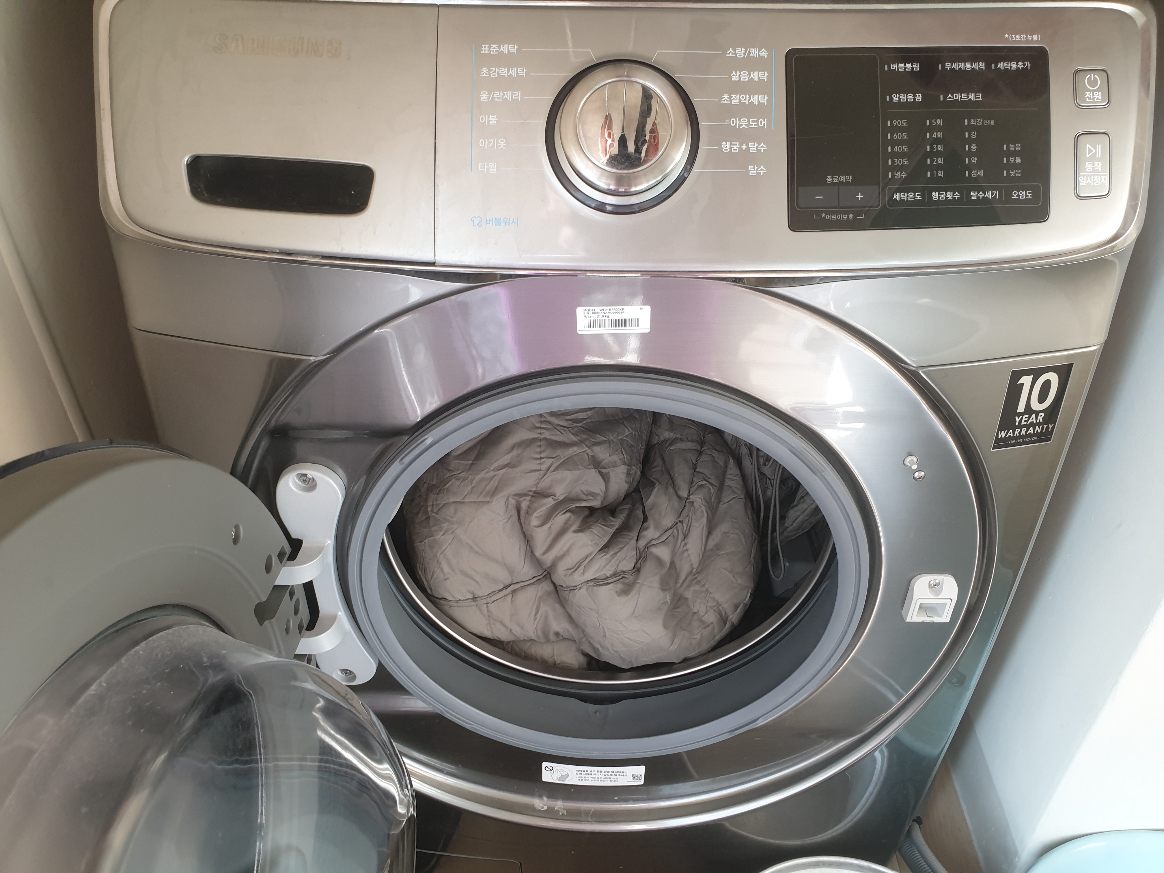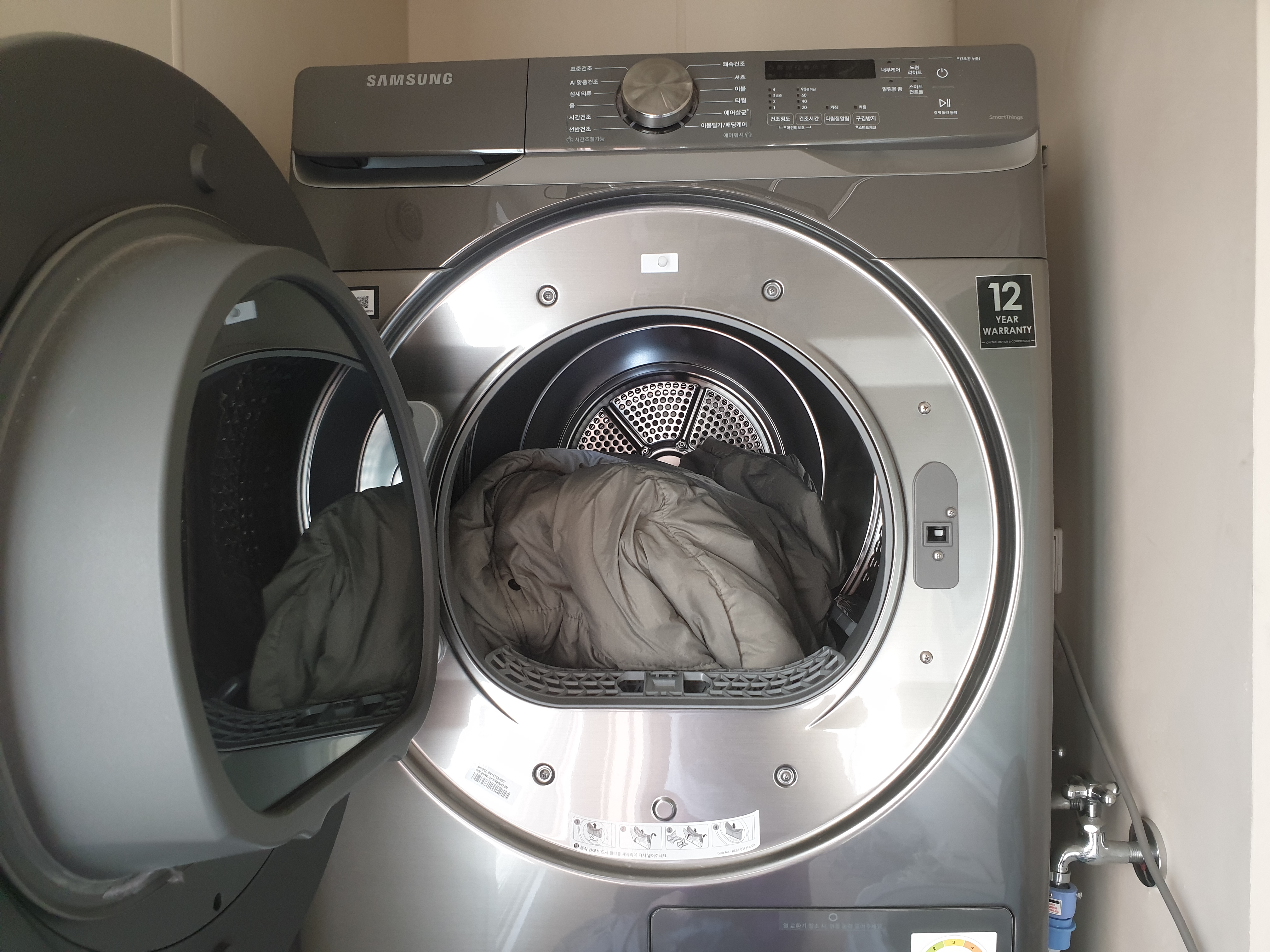 세탁이 끝났으면 건조까지 진행한다. 제품의 숨을 살릴 수 있다. 그리고 고온에 세균까지 정리가 된다.