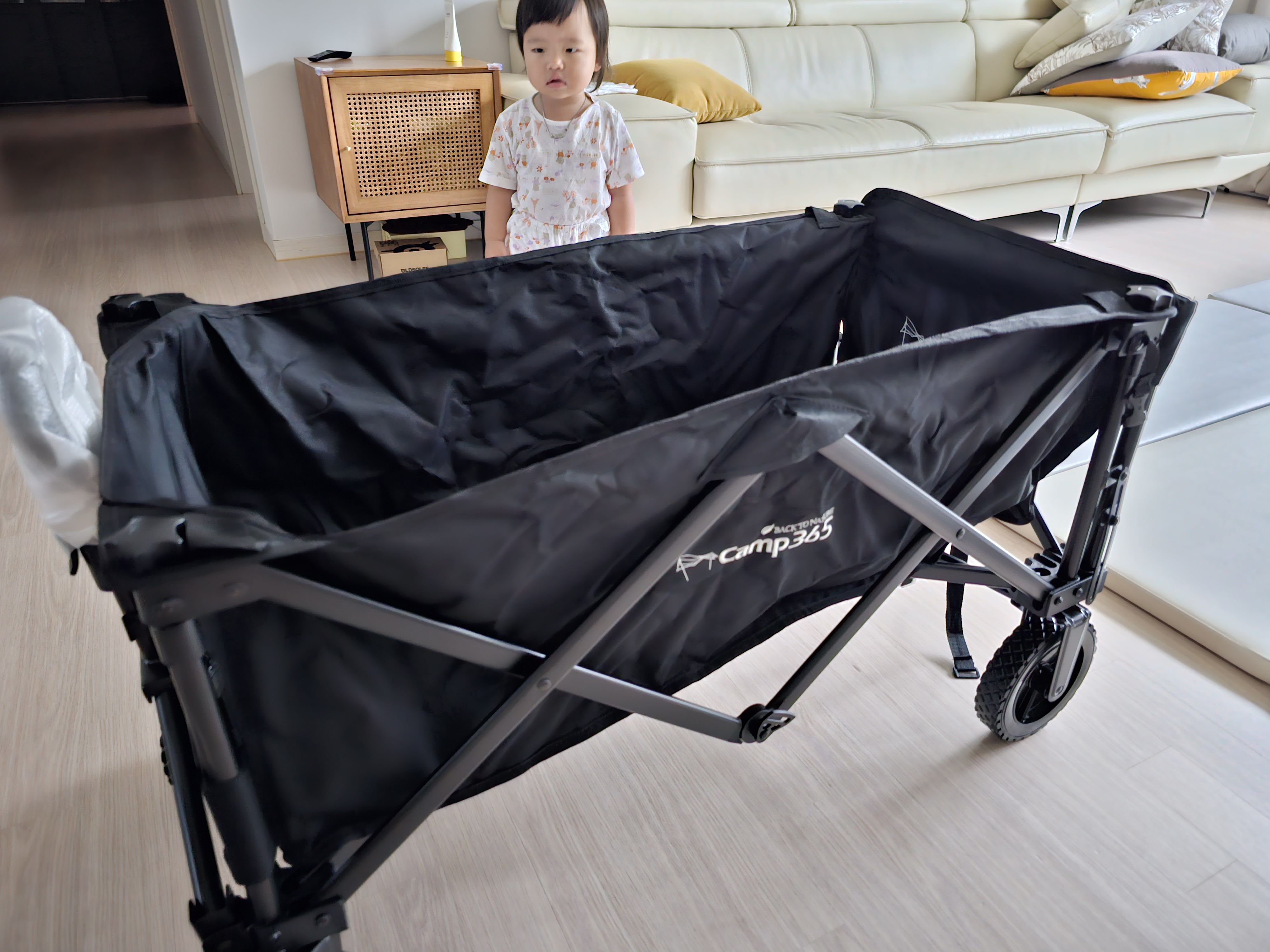 처음 받아봤을 때 생각보다 덩치가 있었다. 근데 이게 또 신기하게도 접으면 얌전히 작아짐. 웨건 접히는 구조가 참 사람 놀라게 한다. 바퀴도 넓직하고 잘 굴러가고, 짐 실었을 때 안정감 있음. 뭐랄까, 무게감이 믿음을 줌.