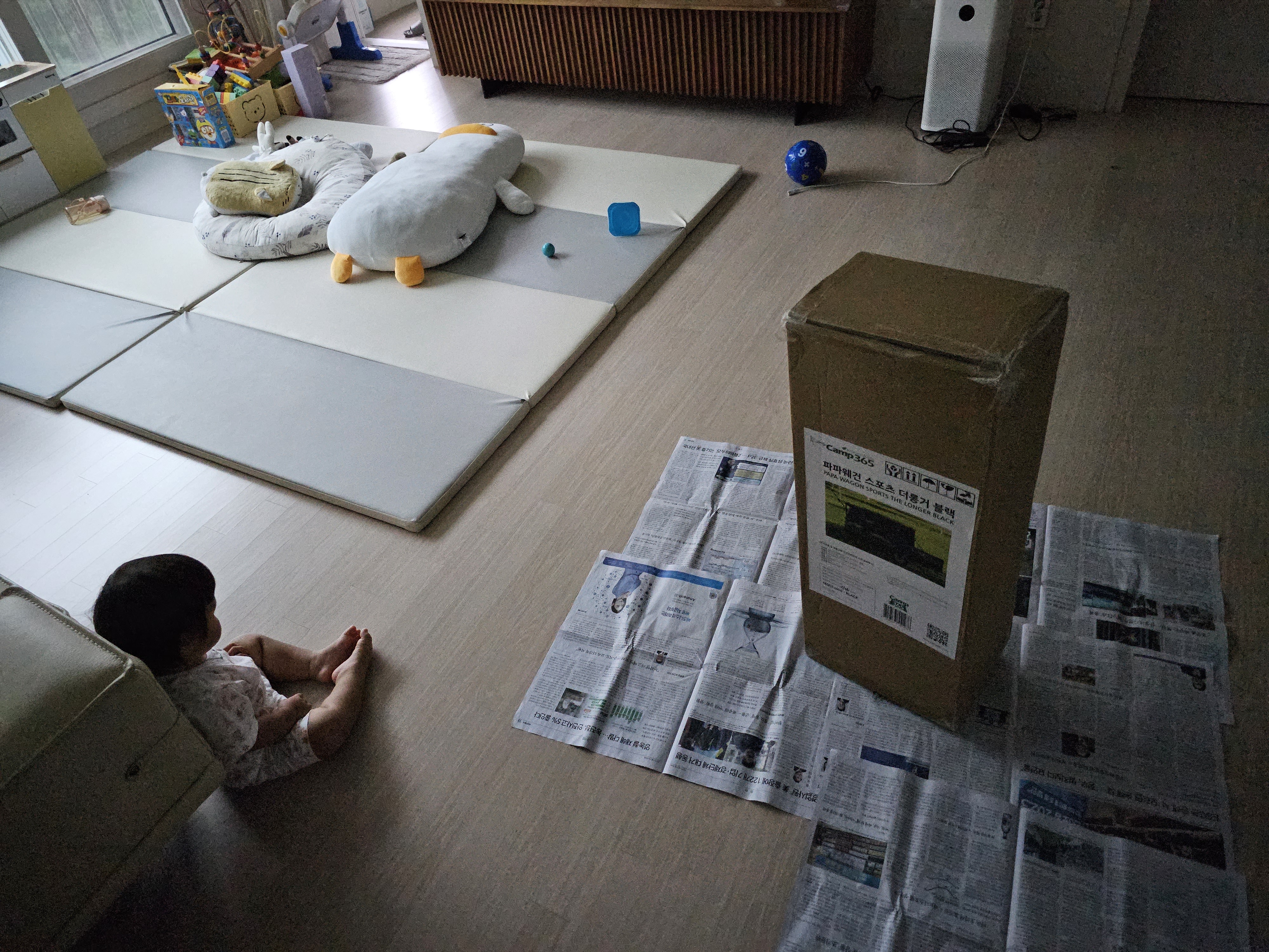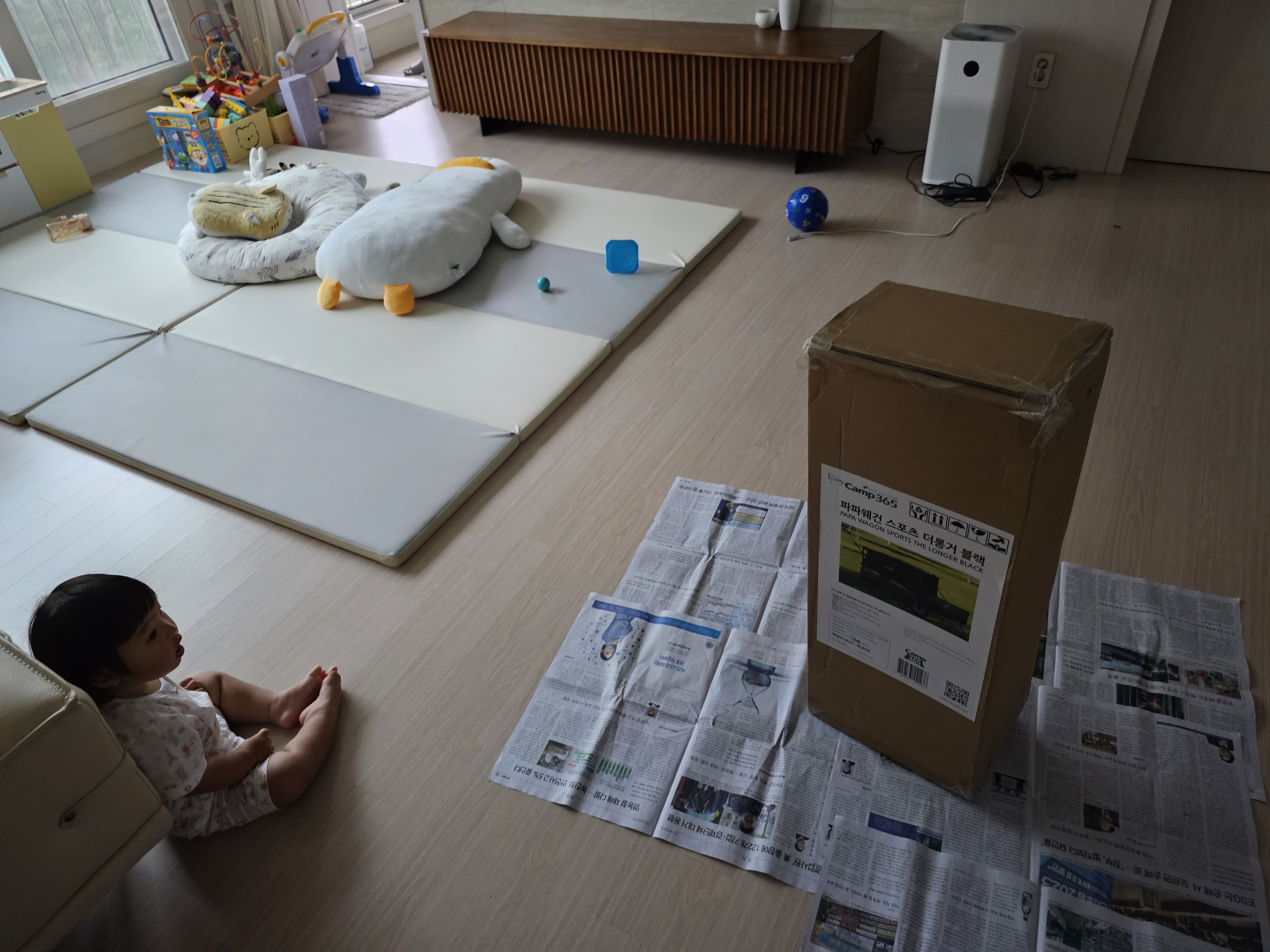 아기를 키우는 남자 입장에서는 아기 깰까 걱정 안되고 제일 편하게 언박싱을 할 수 있는 시간이 아침 육아시간임.