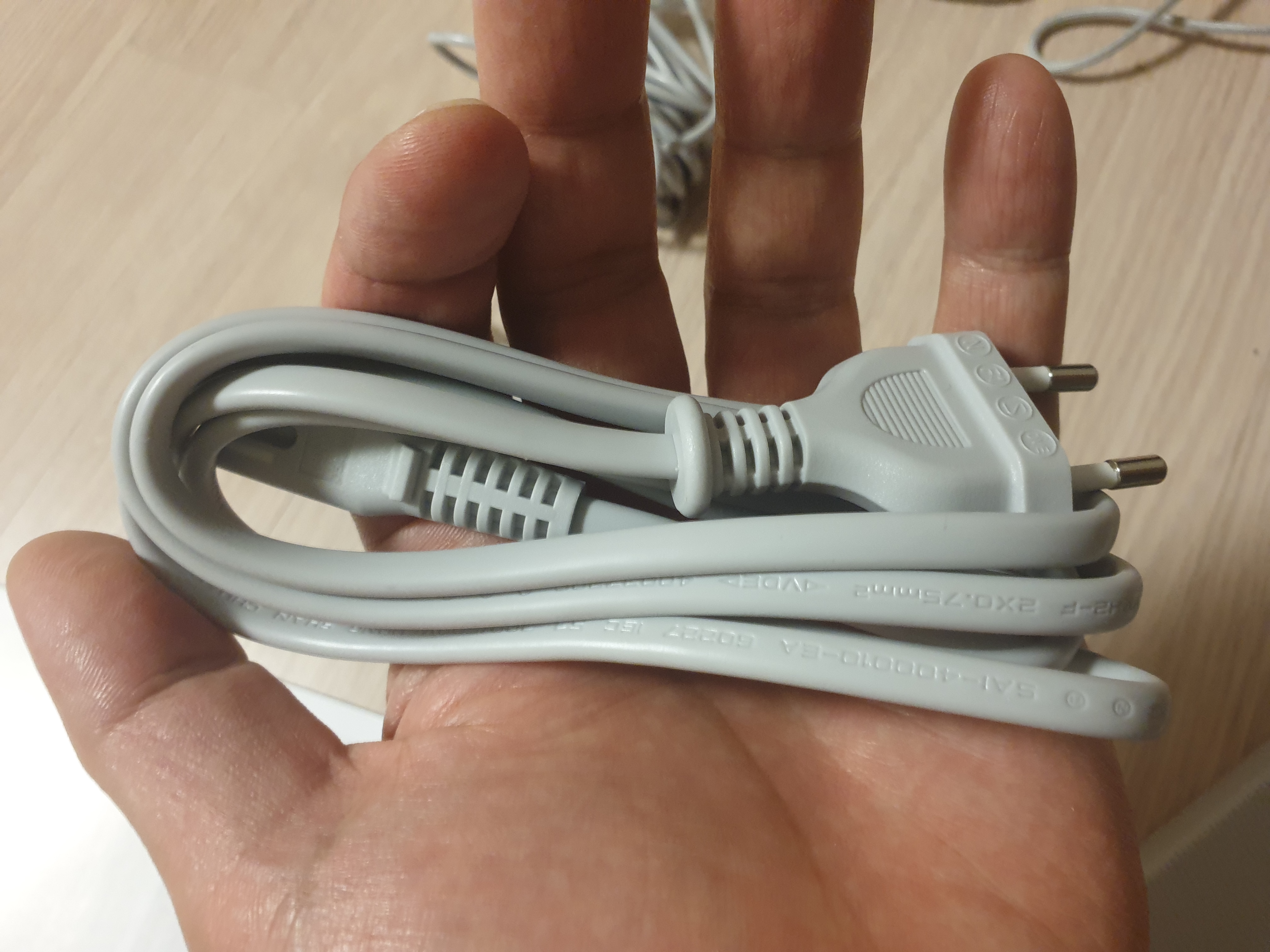 본품위엔 보호필름이 얇게 붙어있고 아래쪽에는 전원을 위한 케이블이 분리 불가하도록 장착되어있다.