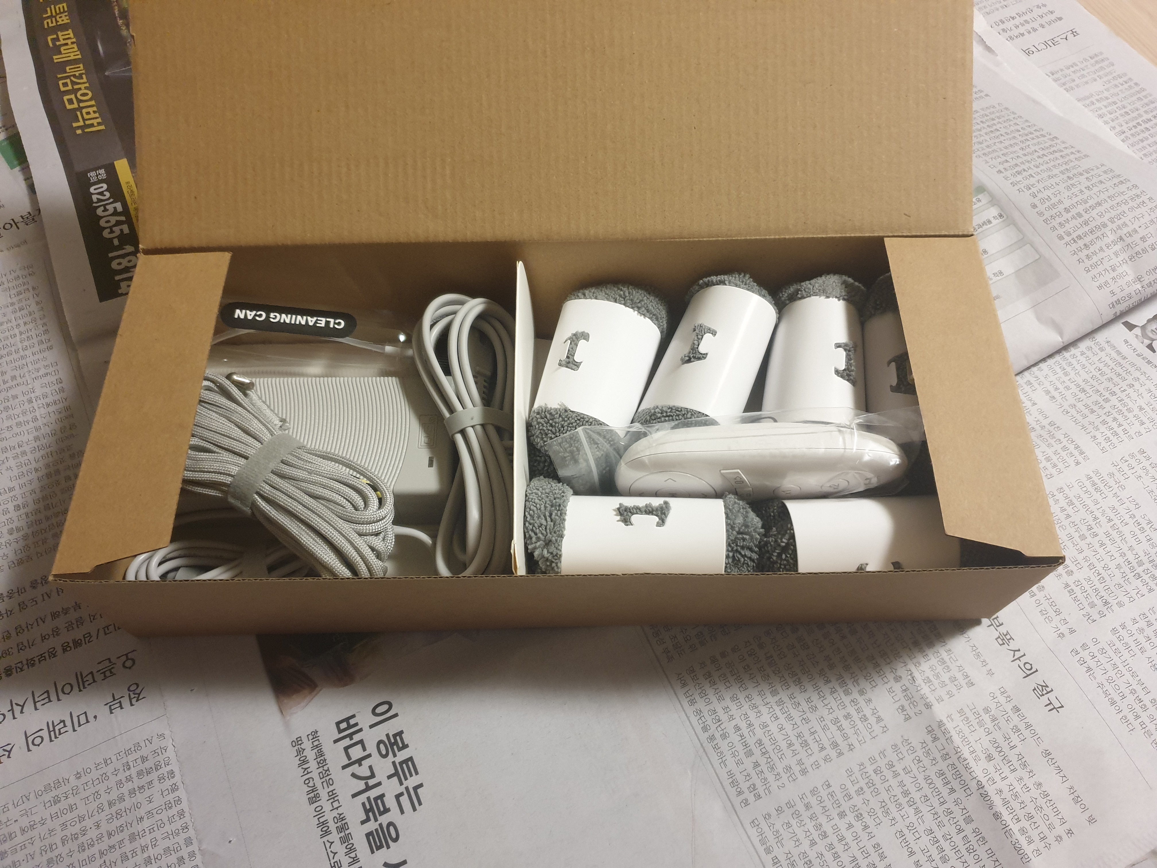 전원 케이블 나머지, 그리고 리모컨, 여분의 청소매트가 들어있다.