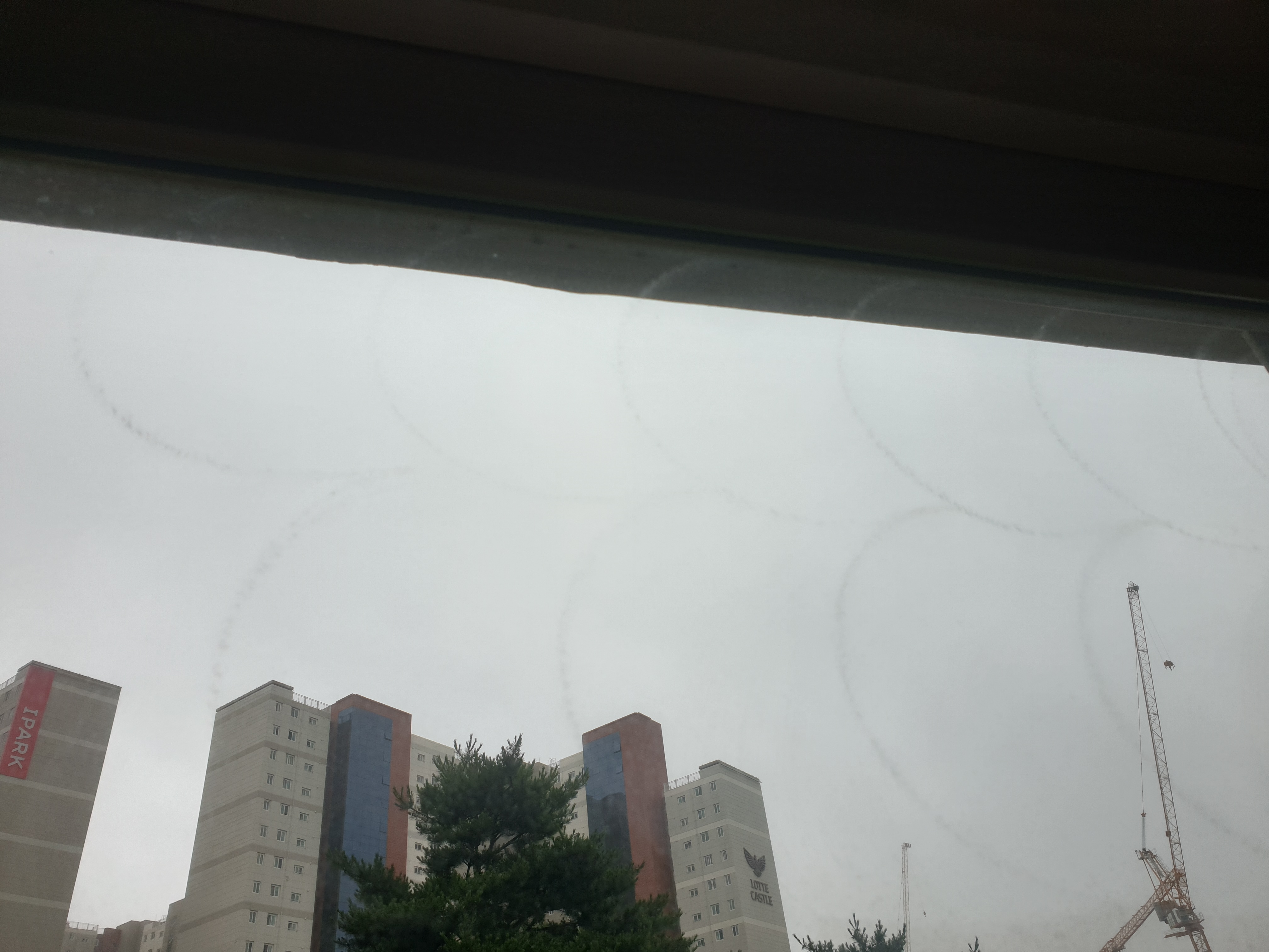 처음에 유리가 너무 더러우면 위와같이 동심원자국이 쭉 생기게된다.