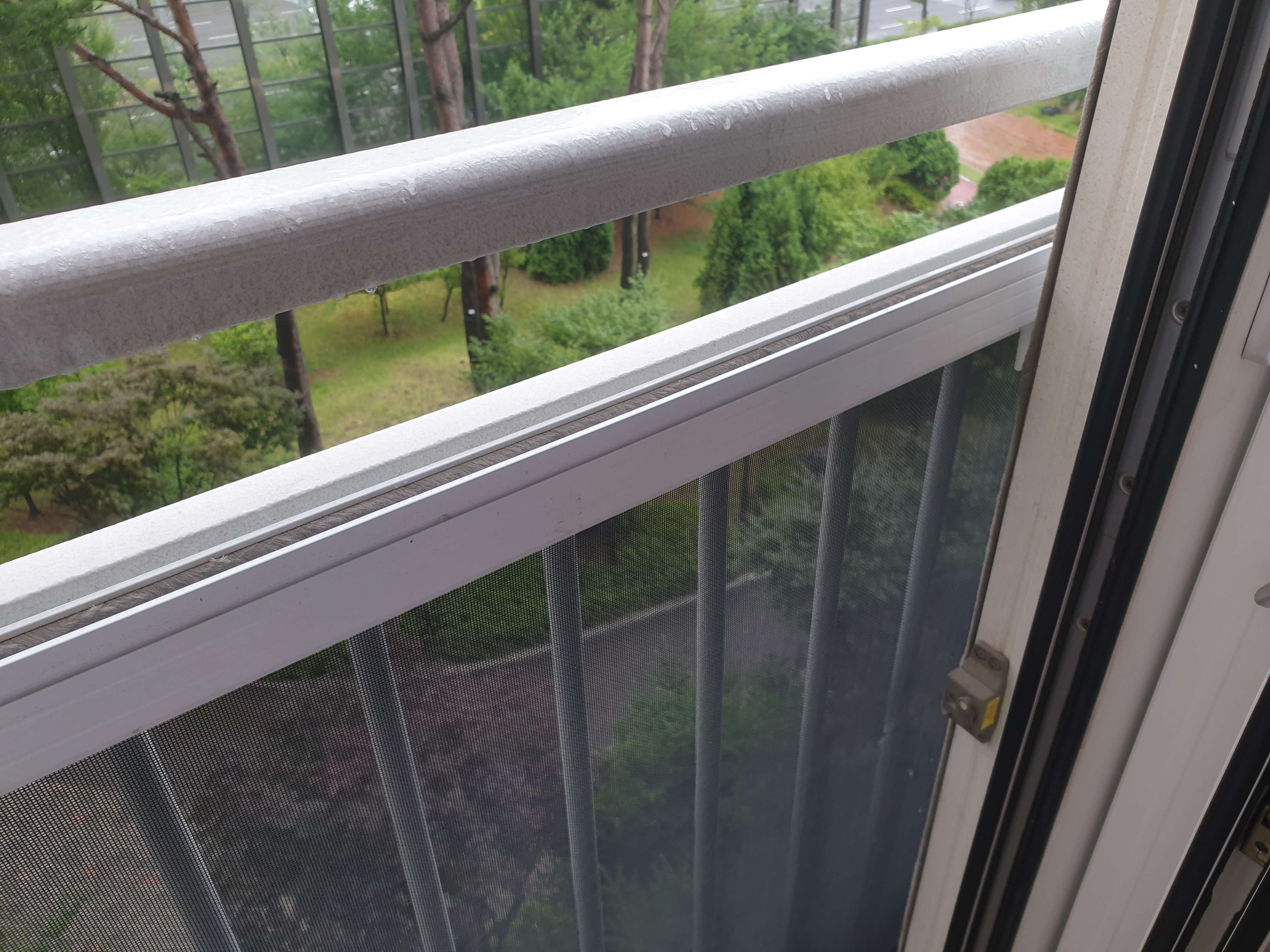 모기장을 창틀에서 분리해서 눕혔다.