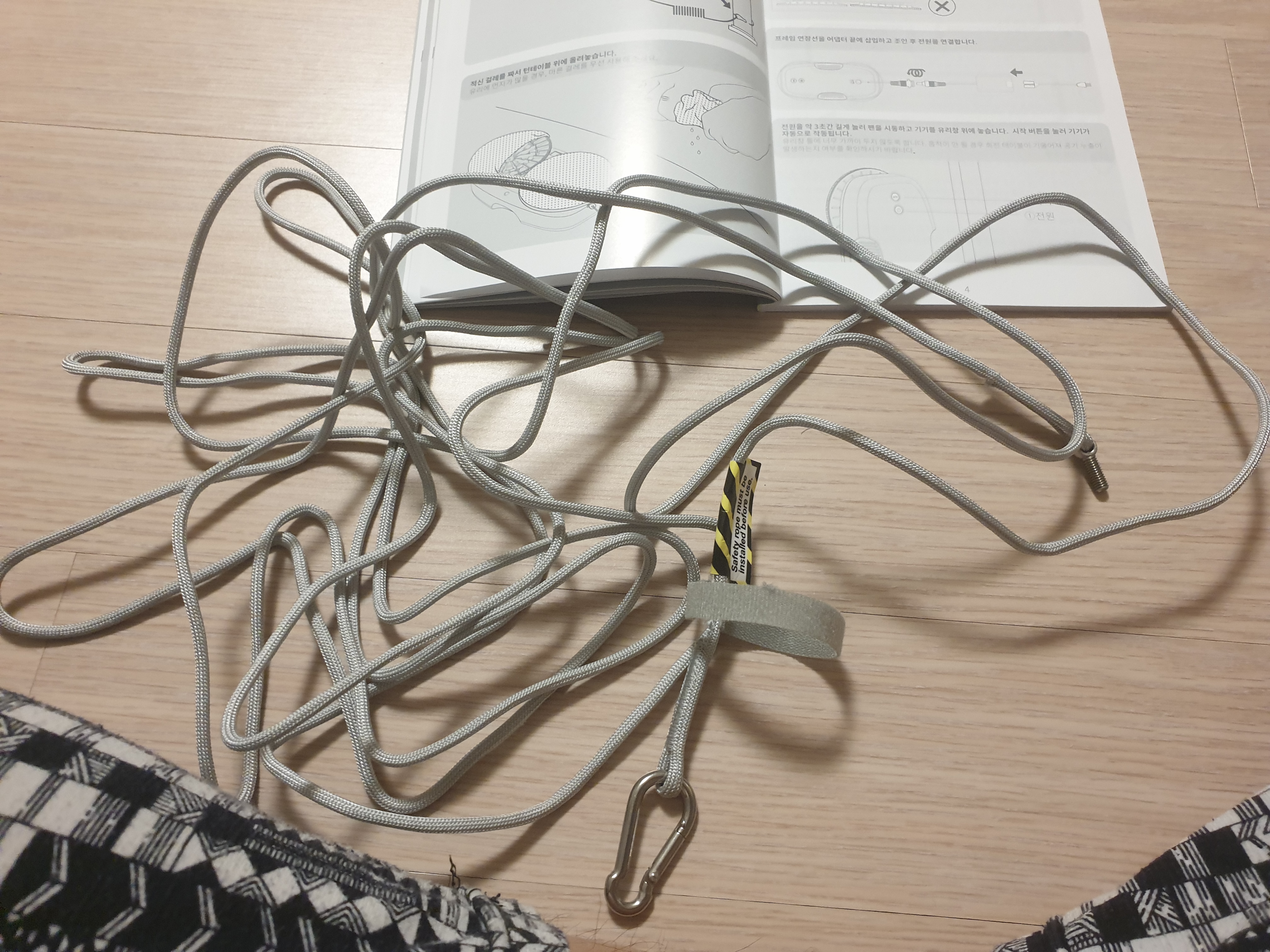 청소기가 창밖에 매달리게 되는데, 그때 전원이 끊어지면 흡착되어있던 친구가 밖으로 떨어질 수 있다. 그때 안전을 보장해주는 생명선으로 이것이 중요해진다. 이걸 집안에 단단히 고정해두고 동작시키도록 하자.