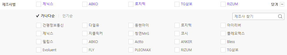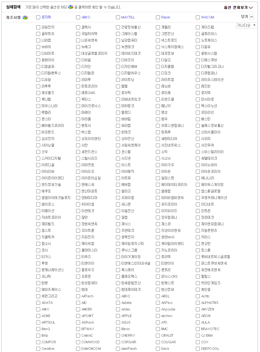 다나와에는 수많은 마우스 생산업체들이 보인다.