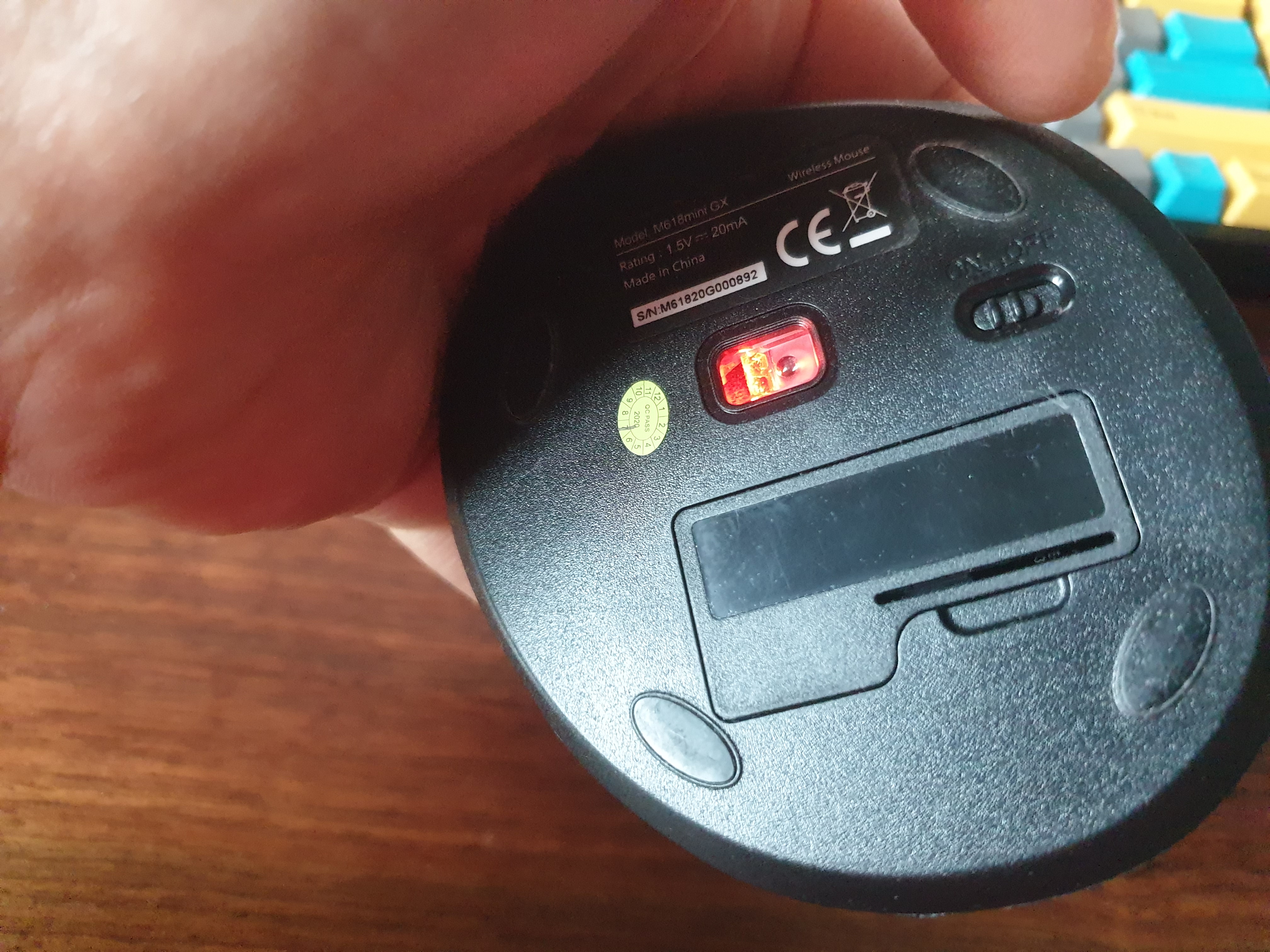 다시 본론으로 돌아와서 이 마우스는 M1313WL이라는 마우스로 무선 마우스이다. 리시버가 제품 하단에 자석으로 장착되어있으며, 이 리시버를 PC의 USB단에 장착해 무선통신하는 방식이다.