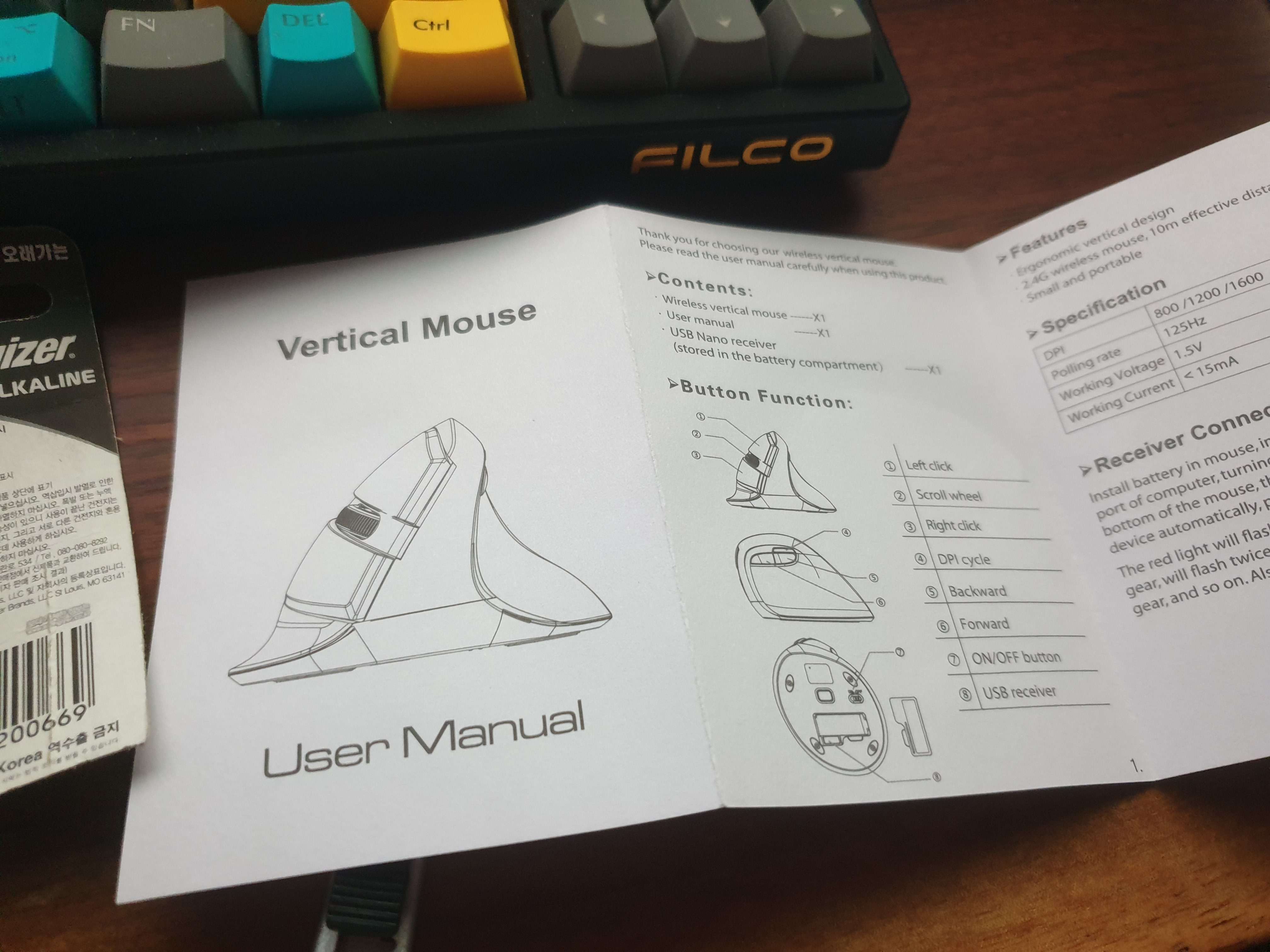 초창기 버티컬 마우스로써 디자인도 다듬어지지 않았고 바닥에는 넓은 판때기까지 달려있다.