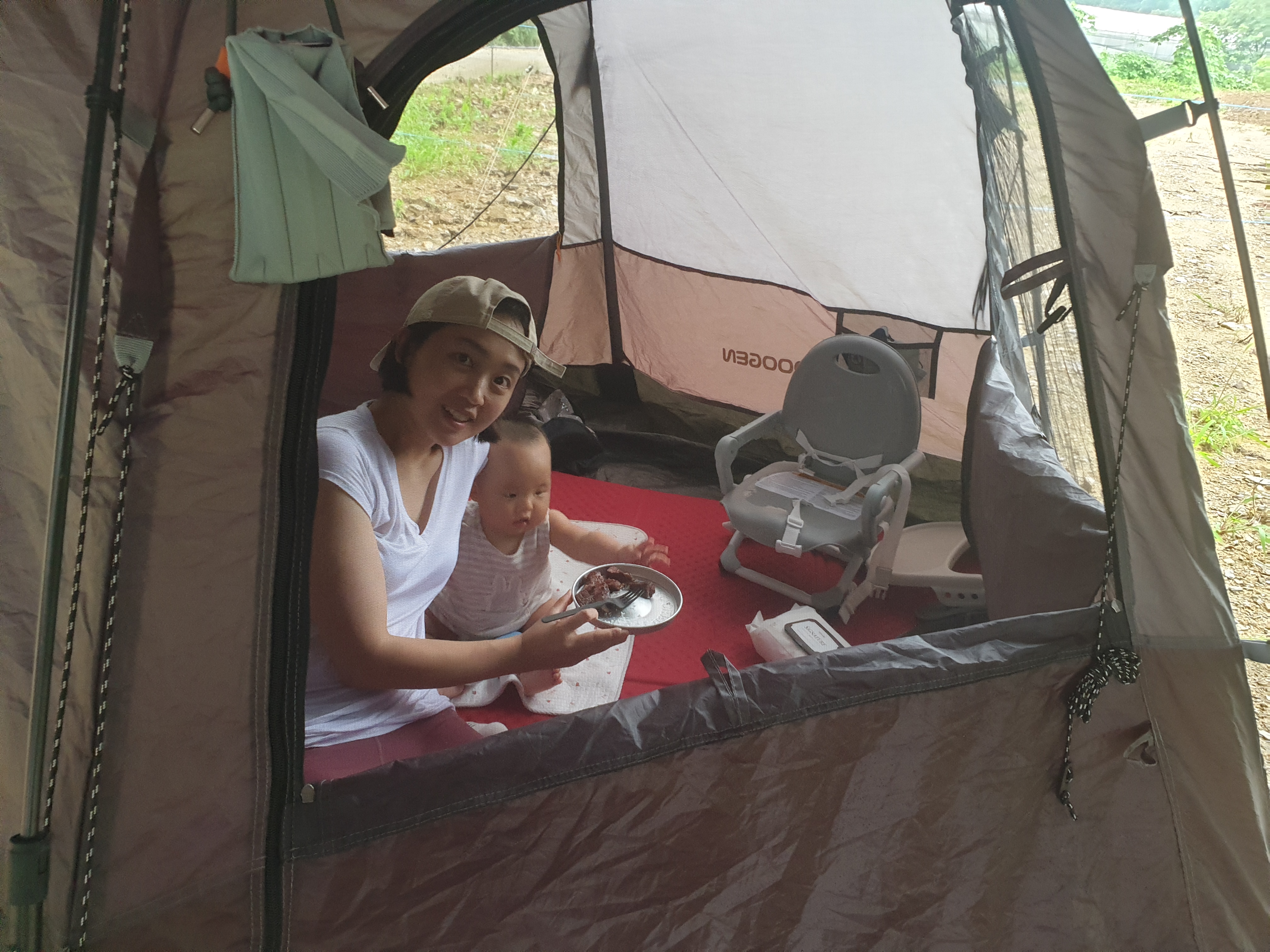 하지만 기어다니는 아기를 데리고 캠핑을 가는건 참 힘든 일이었다. 쉽지 않았다. 바닥을 기어다니기 시작하기 전이 오히려 더 편했던 것 같다. 이제 마음껏 돌아다니게 되면서 이전보다 더 좁아졌다.