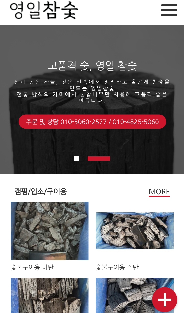 그리고 이사 후 2020년 2월 사용한 숯은 영일참숯이다.