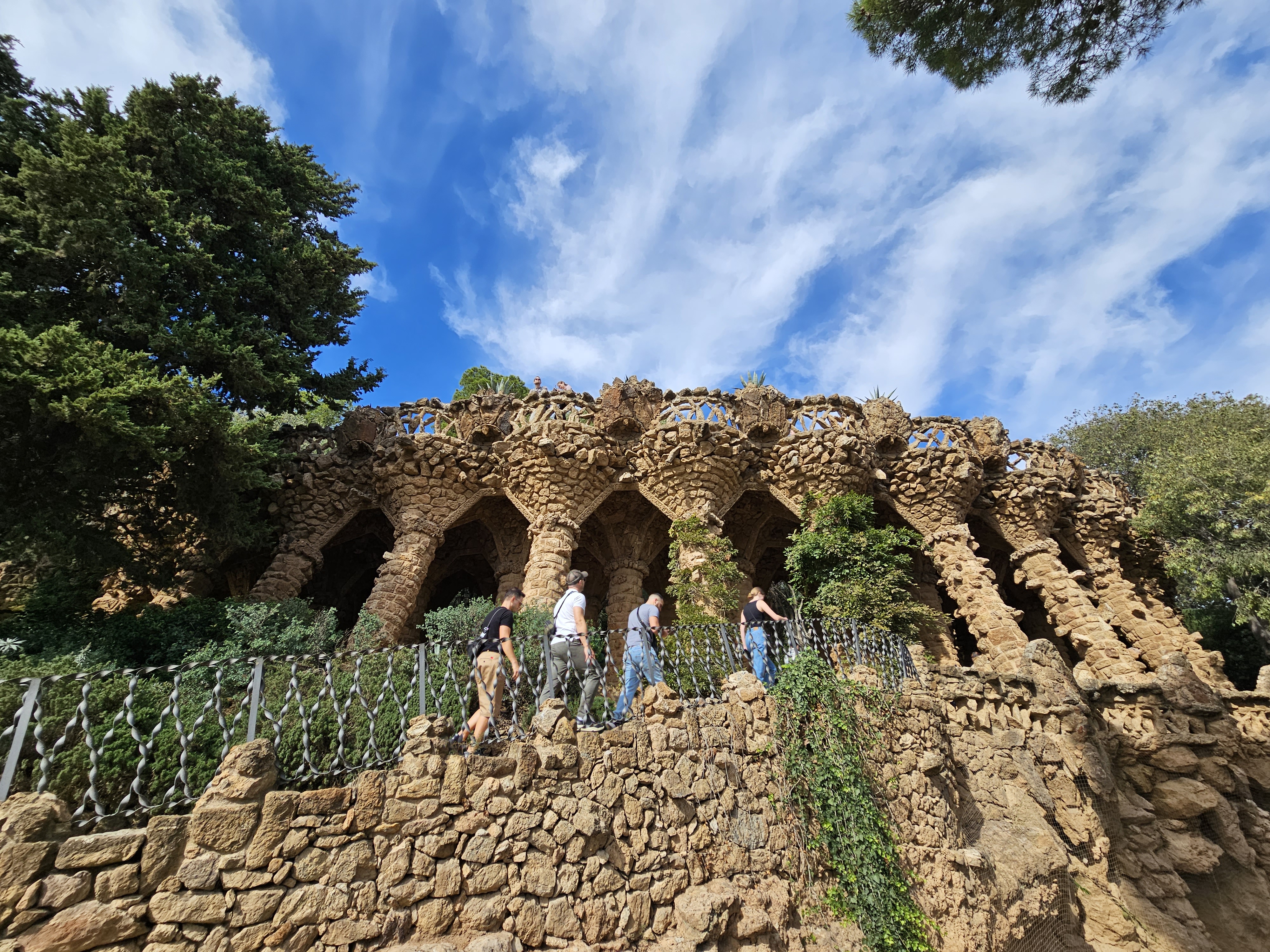 구엘공원은 원래 주택 단지로 설계되었으나, 그 계획은 성공하지 못하고 공원으로 변모하게 되었다고 한다. 이곳은 가우디 특유의 유기적이고 환상적인 건축 양식이 돋보이는 공간. 화려한 모자이크 타일로 장식된 뱀 모양의 벤치와 대형 계단, 독특한 기둥으로 이루어진 홀 등이 유명한데 어쩌면 세상에 너무 카피가 많아서일까.