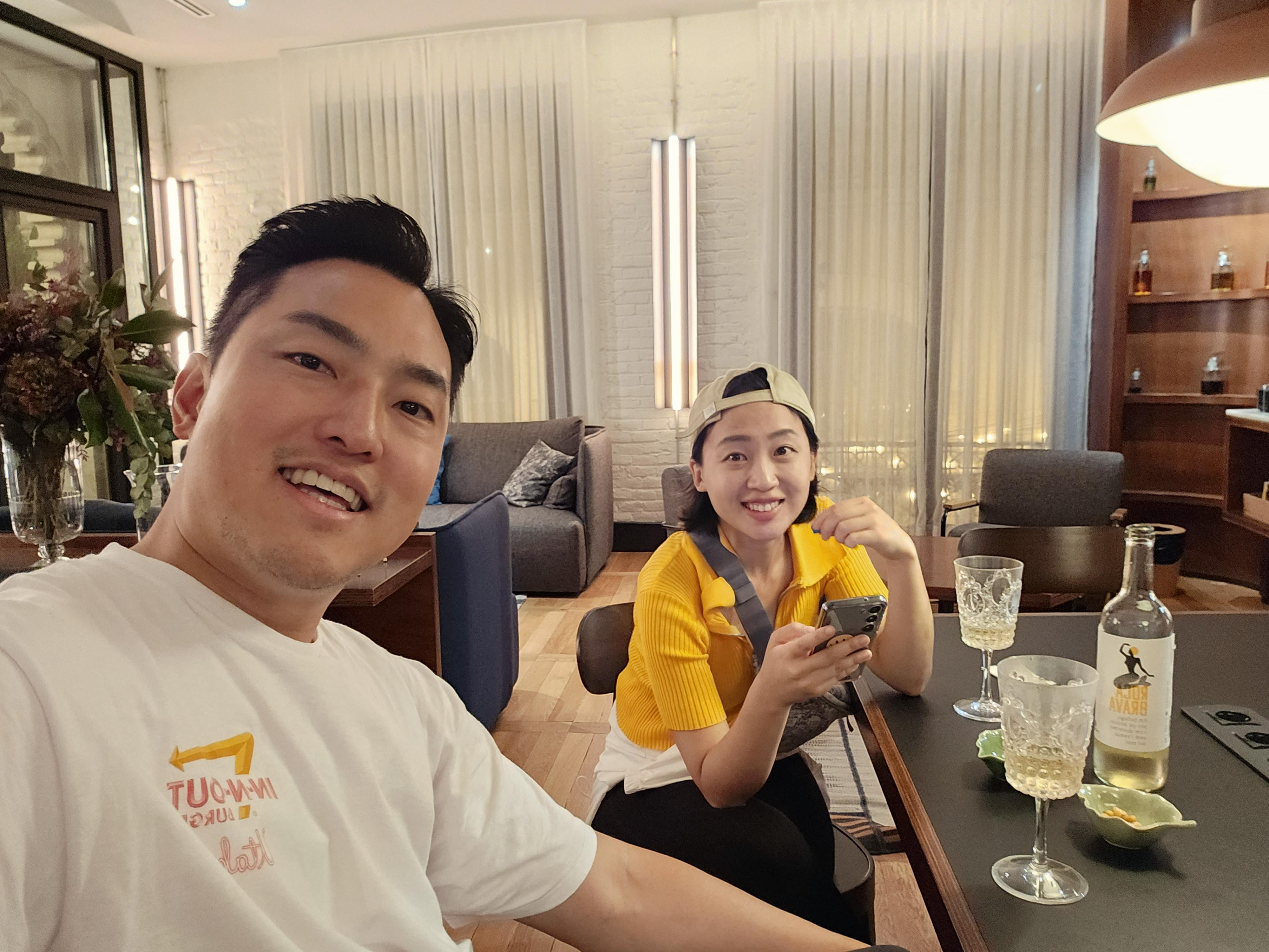 저녁 먹으러 가기 전 와인을 간단히 즐겼던 우리들.