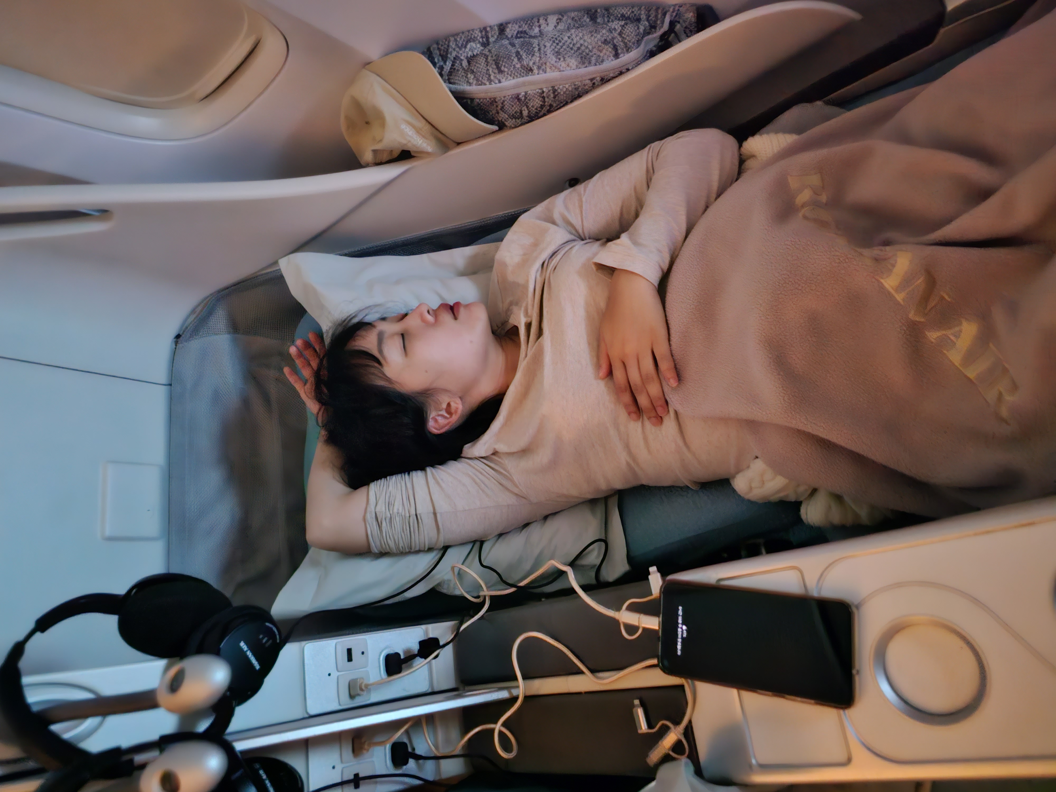그래도 날아가면서 깊은 잠을 자는것을 가능하게 해준 비즈니스 클라스 시트.
