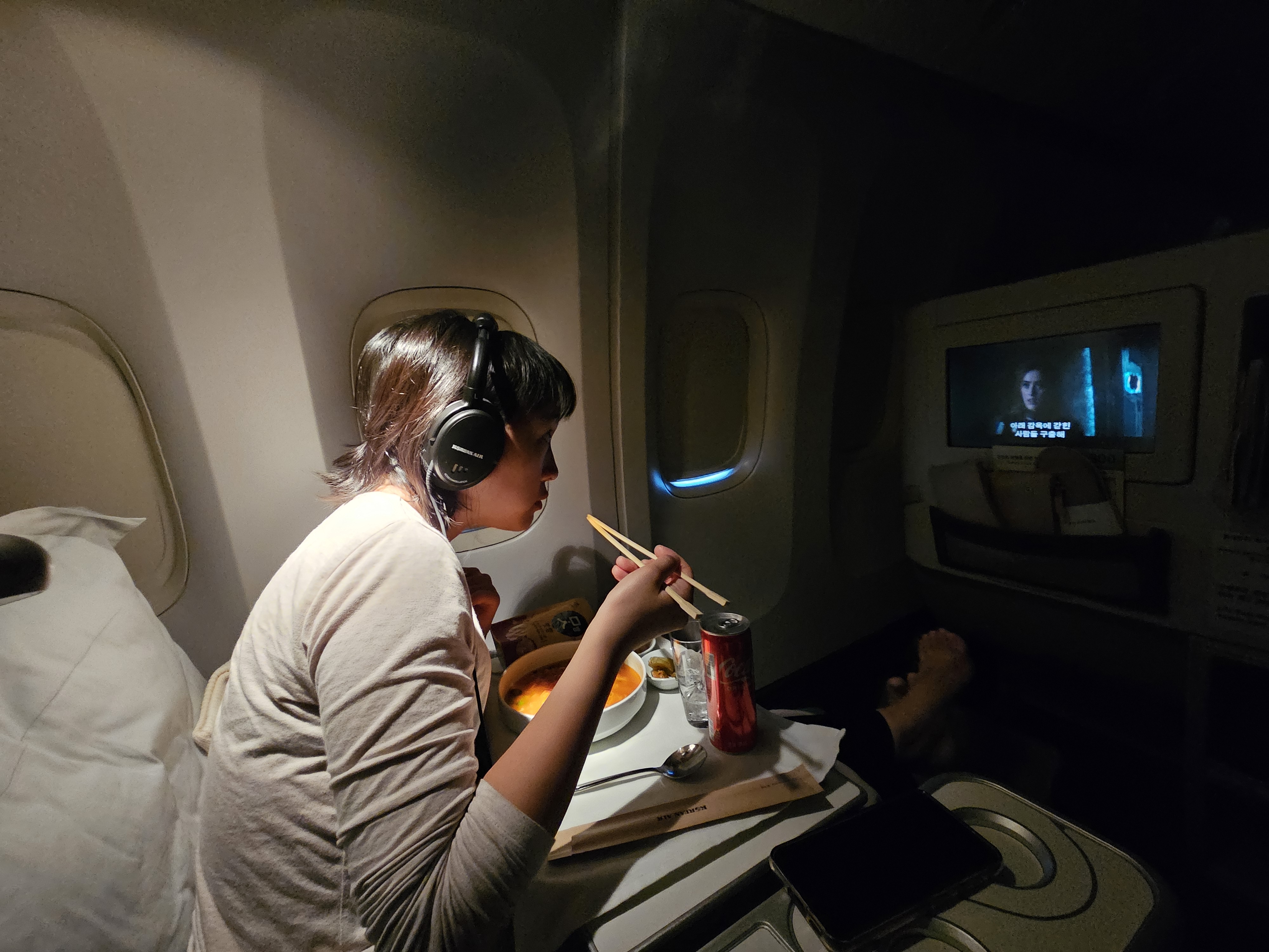 집에가는 비즈니스 클라스에서의 시간. 기체가 신형은 아니라서 똑같이 180도 펼쳐짐은 되지만 첫날 타고온 기체에 비해 상대적으로 덜 쾌적하긴 했다.