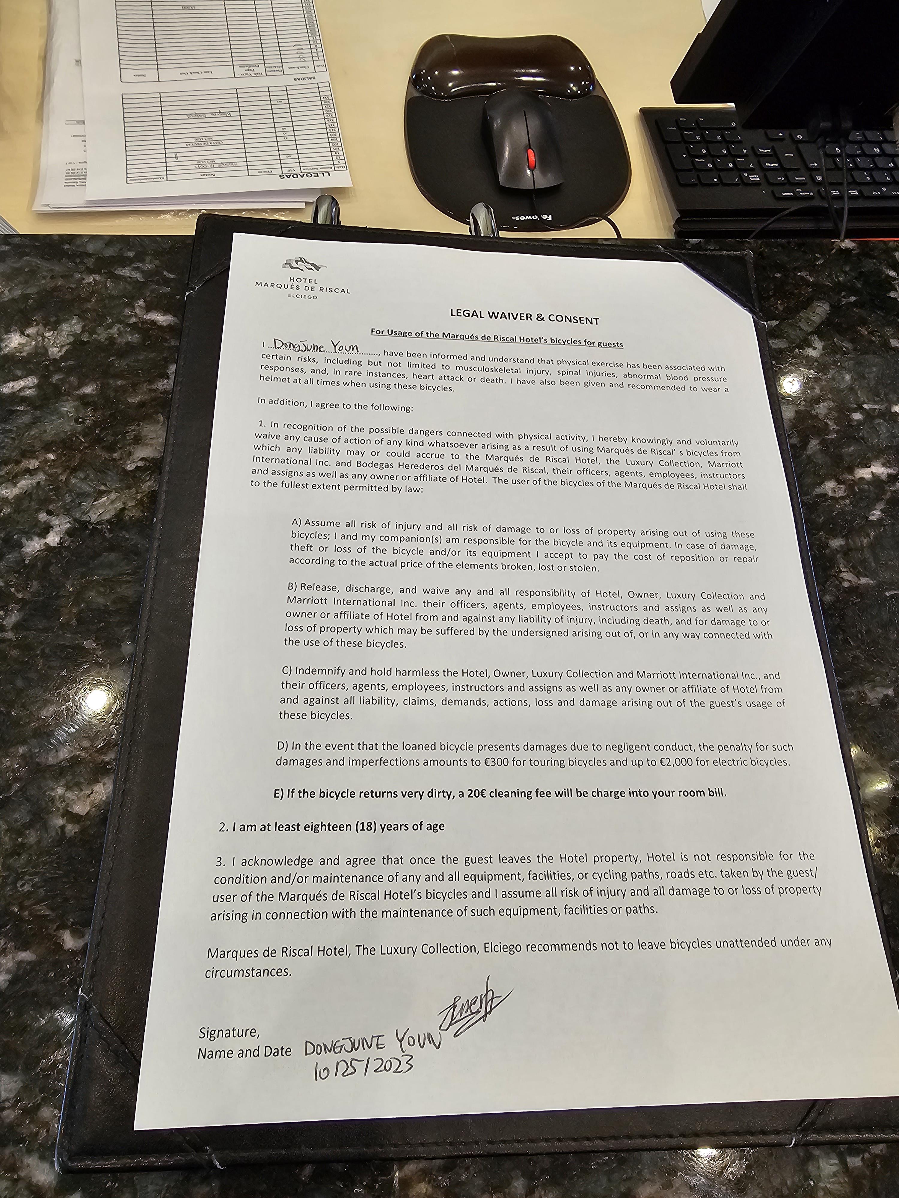 호텔 마르케스 데 리스칼에서는 자전거 대여서비스를 운영하고 있었다.