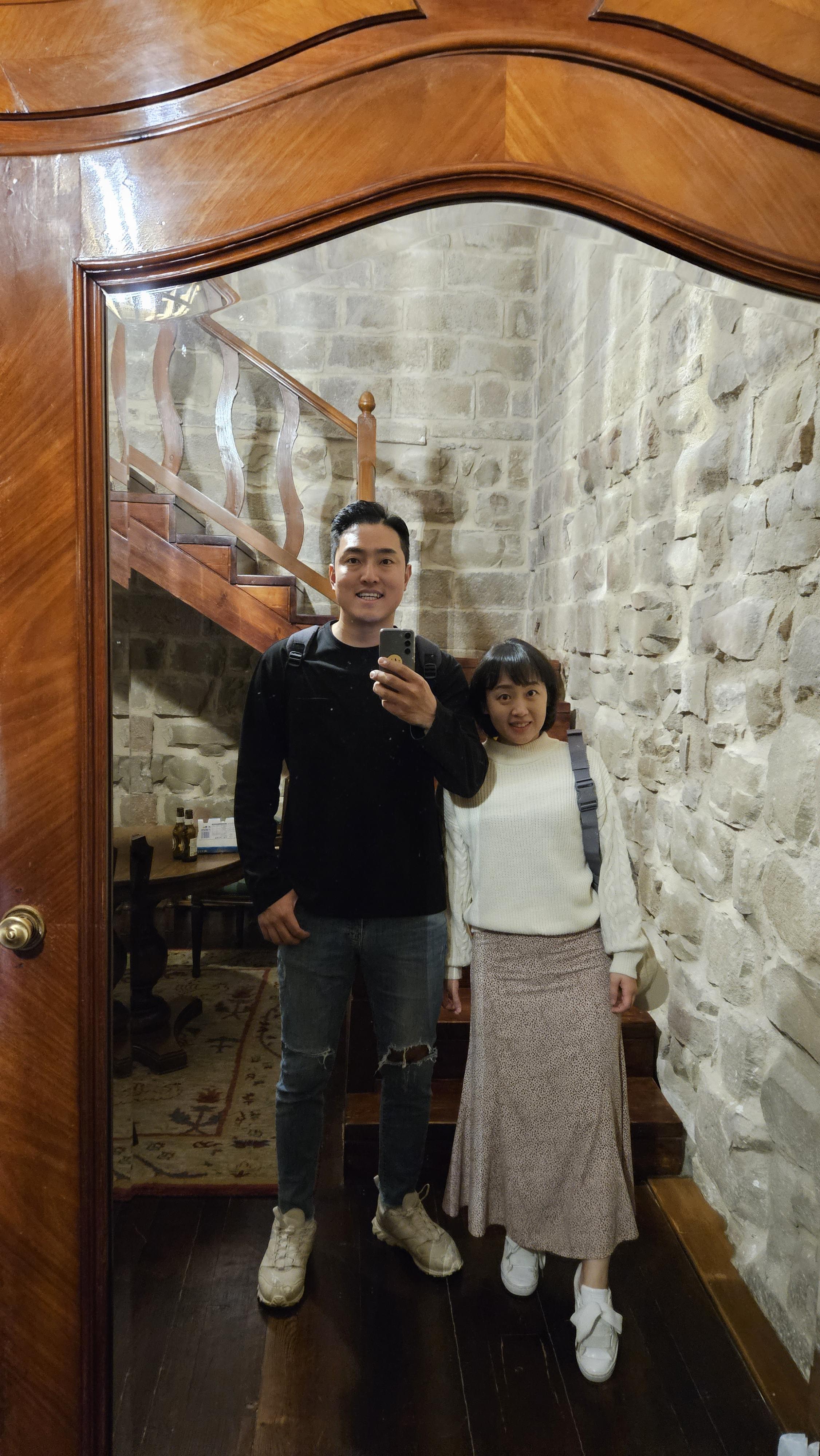 함께 성에 올라서 풍경을 관찰중인 분에게 사진을 부탁했다. 바닥면을 너무 넓게 찍어주셨지만 만족스럽다.