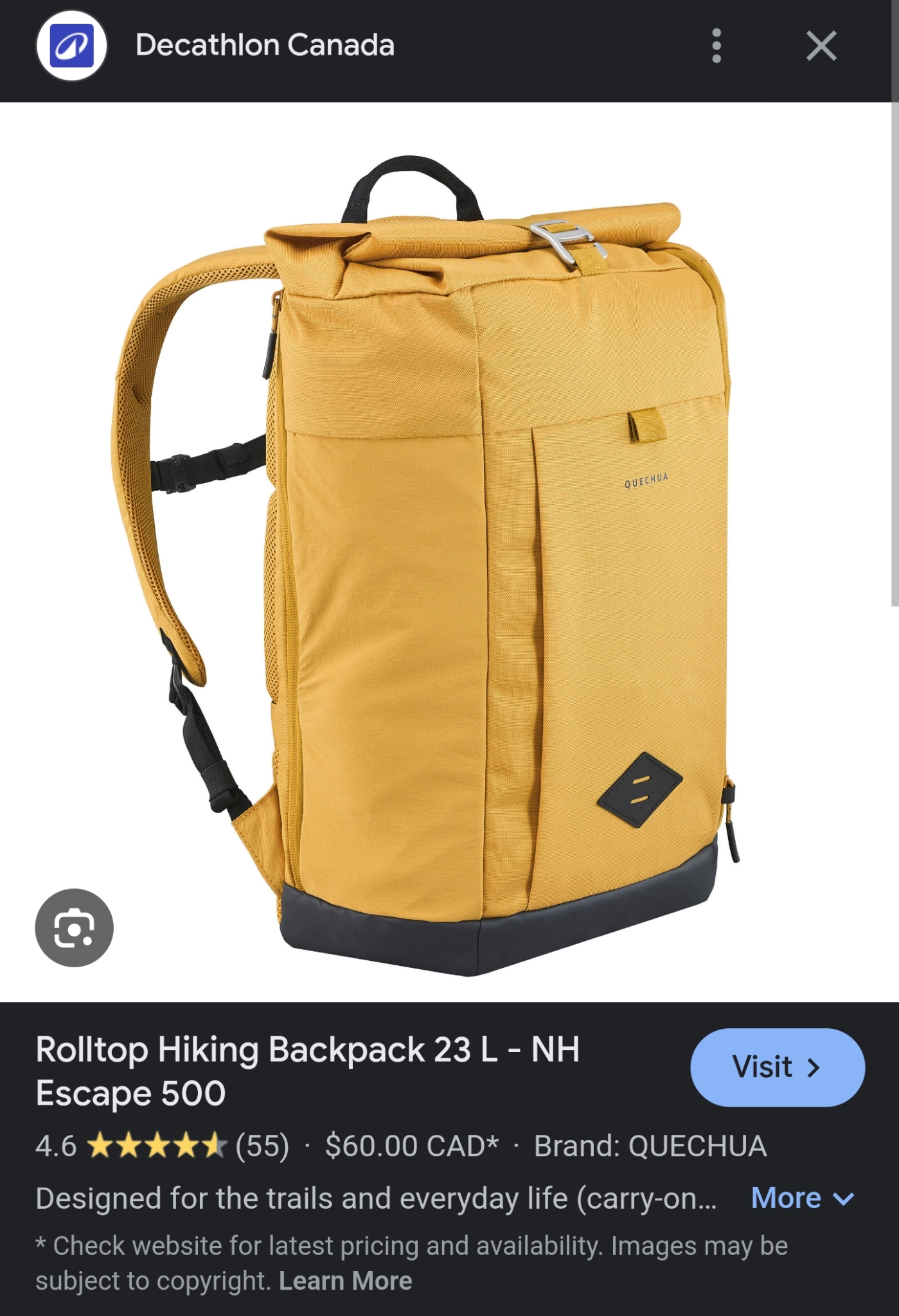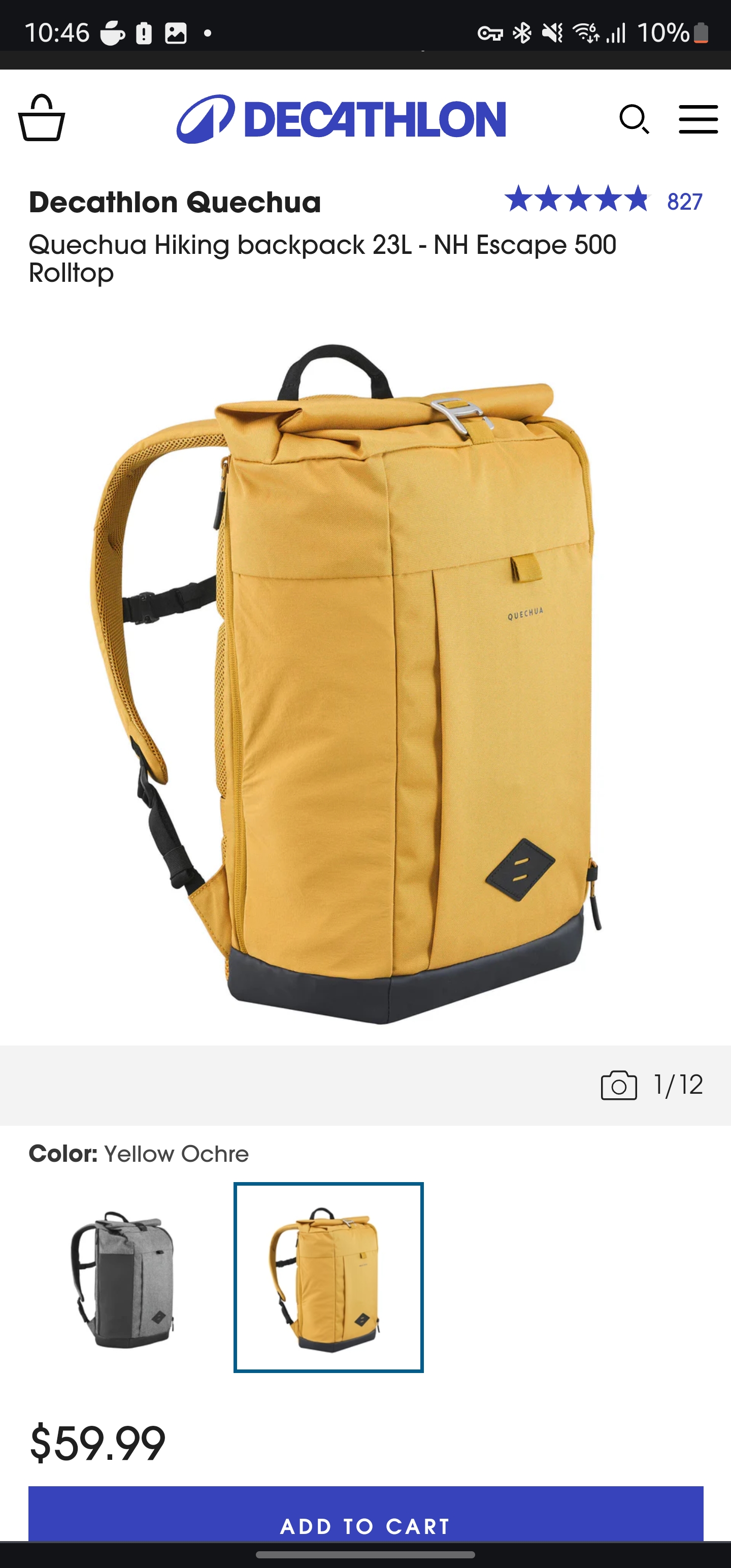 이상 가격도 좋고 유니크함과 활용성도 챙긴 데카트론의 백팩, NH ESCAPE 500 ROLLTOP 23L YELLOW 이었다.