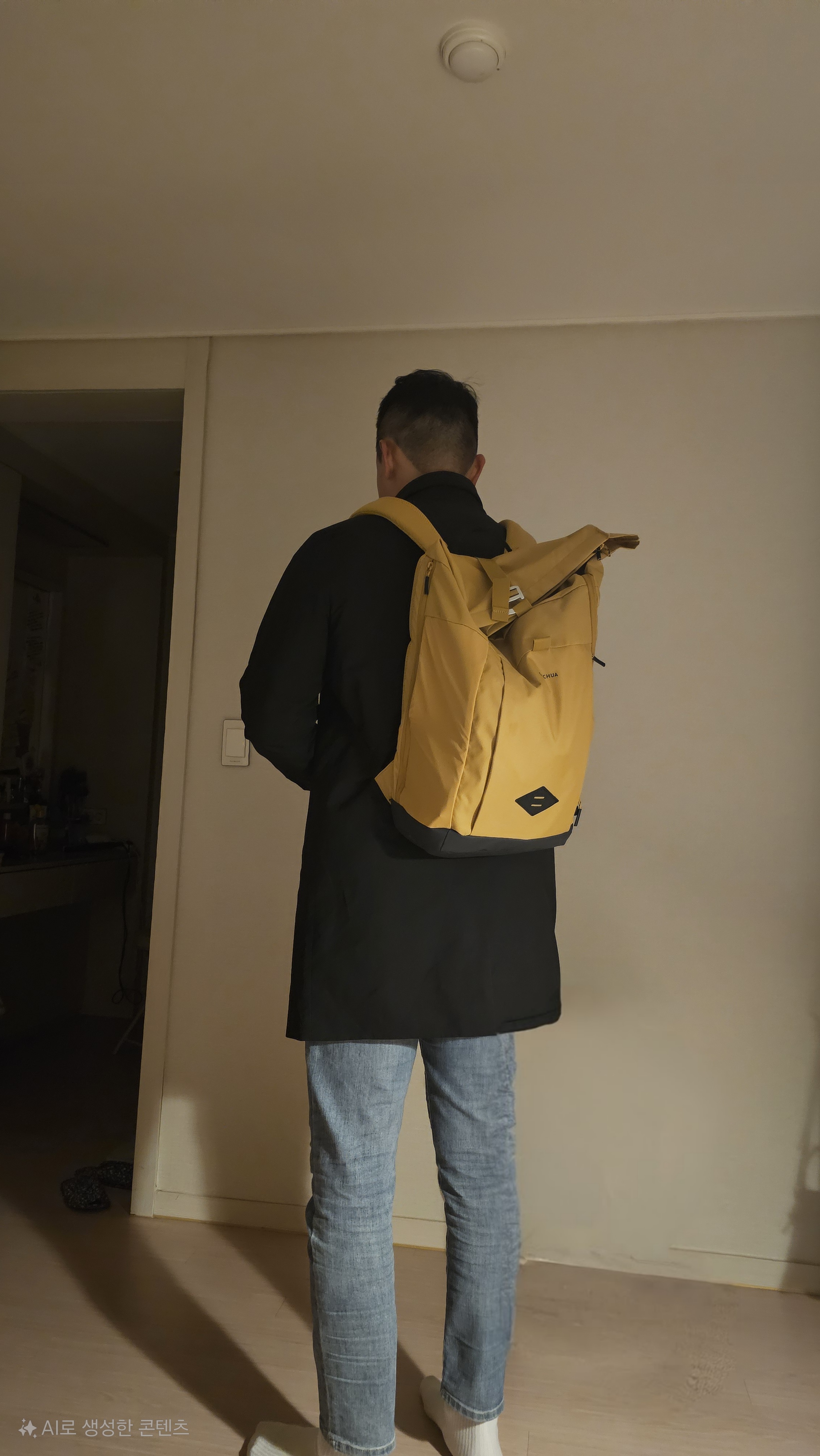 엄청 쨍하게 비비드한 노란 벤치위에 백팩을 올려보았다.