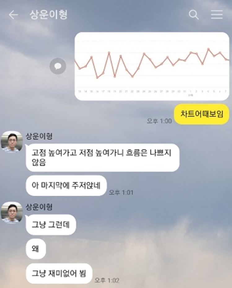 주식 그래프로 생각해서 분석을 해내고 있는 우리 상운이형