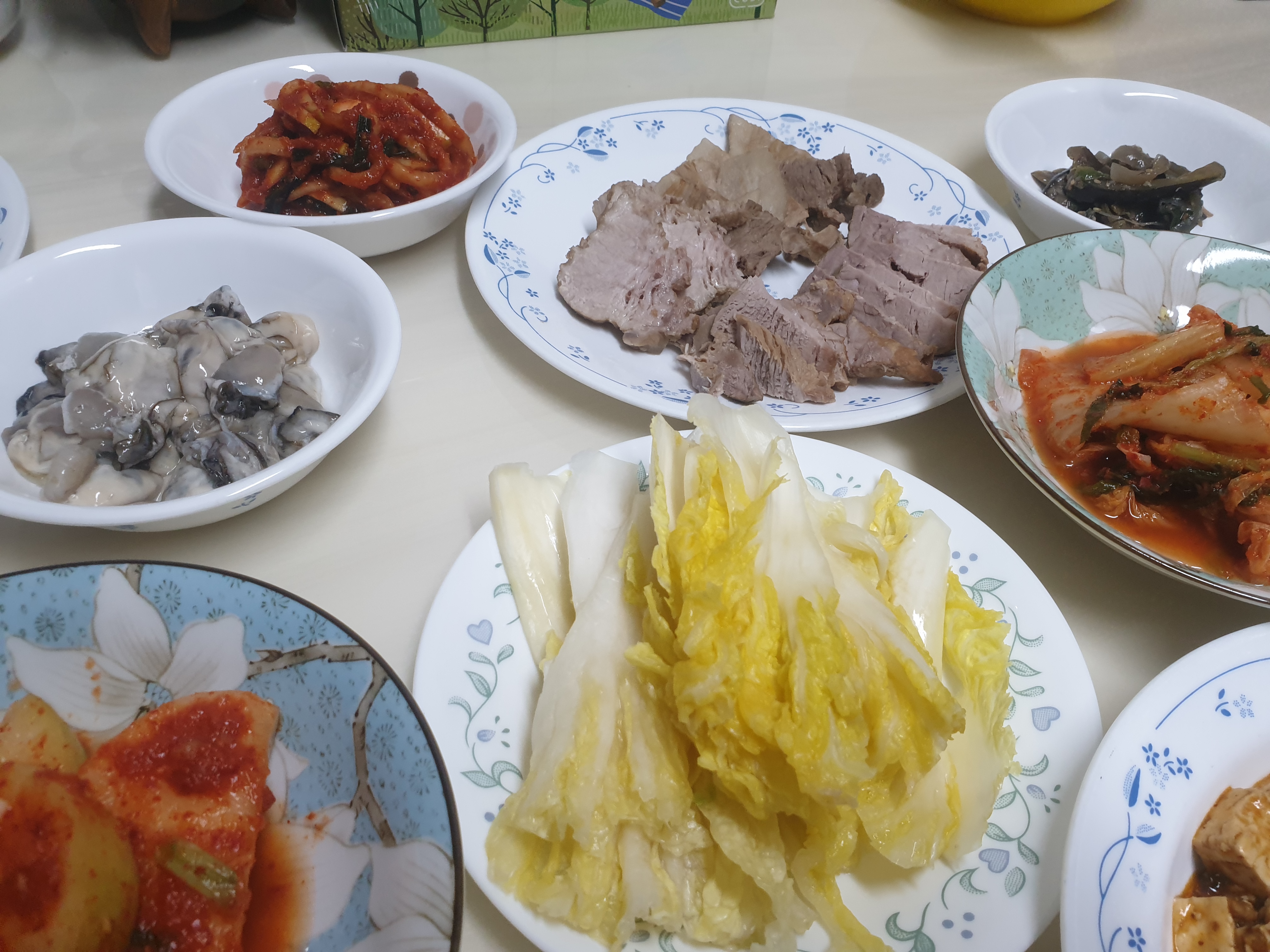 추가로 집에 있었던 굴과 보쌈 등등을 꺼내놓고 같이 먹었다.
