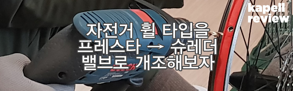 그래서 티티카카의 펑크난 튜브를 교체하는 김에 프레스타 튜브 타입을 슈레더 타입으로 변경해보고자 했다.