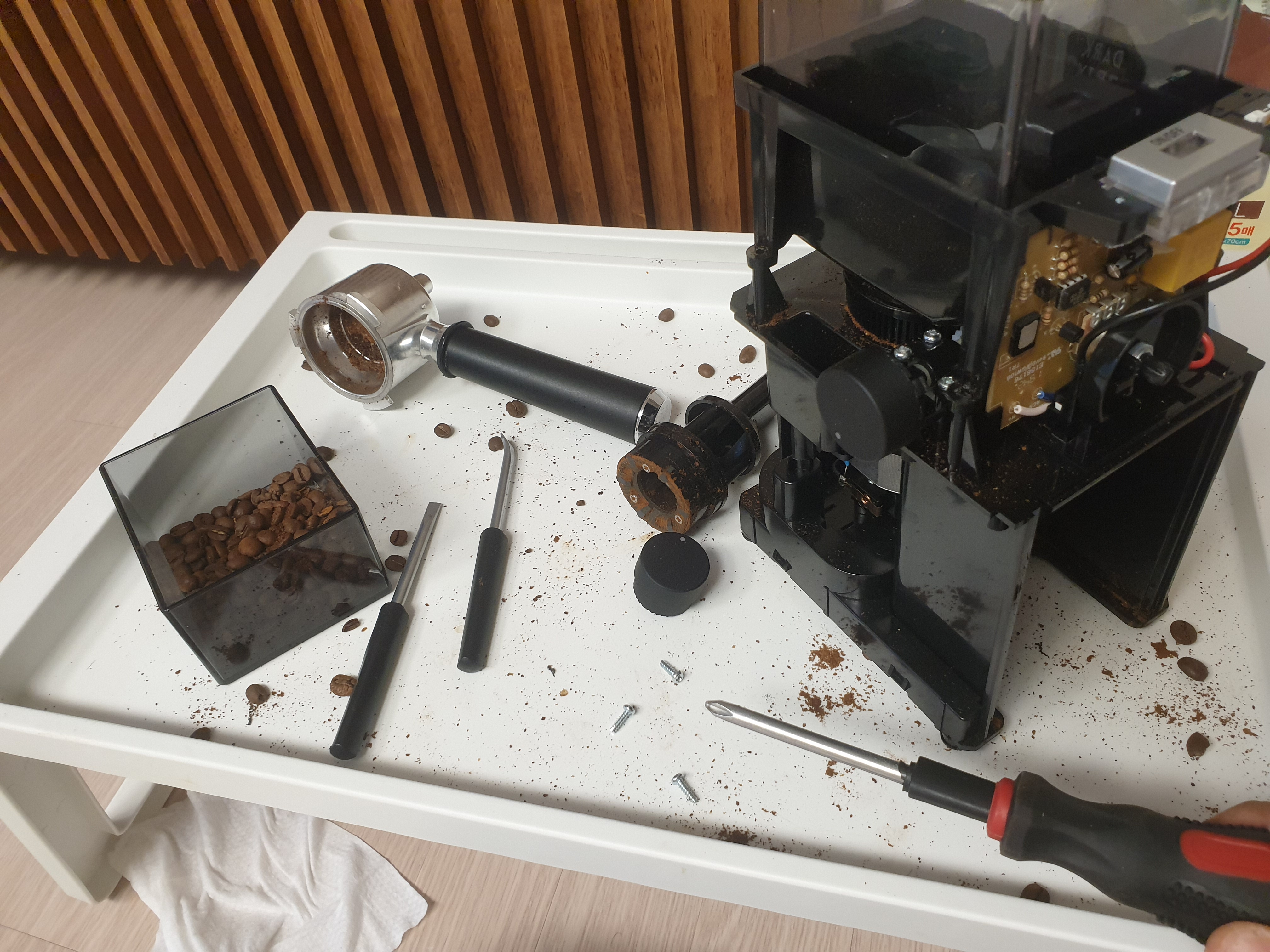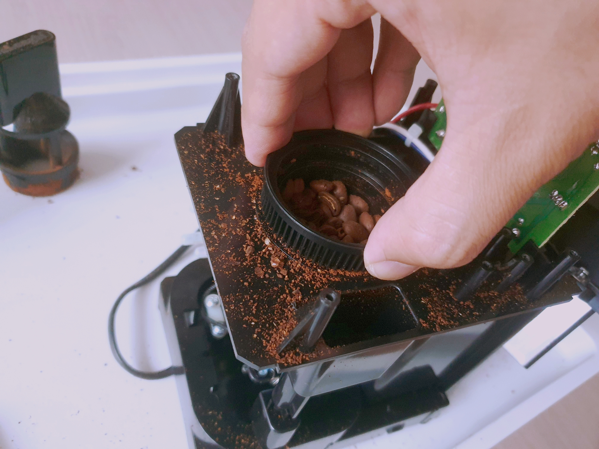 13. 분리해주면 안에 이미 투입되어있던 원두가 많이 들어있었다. 임시로 제거해준다.