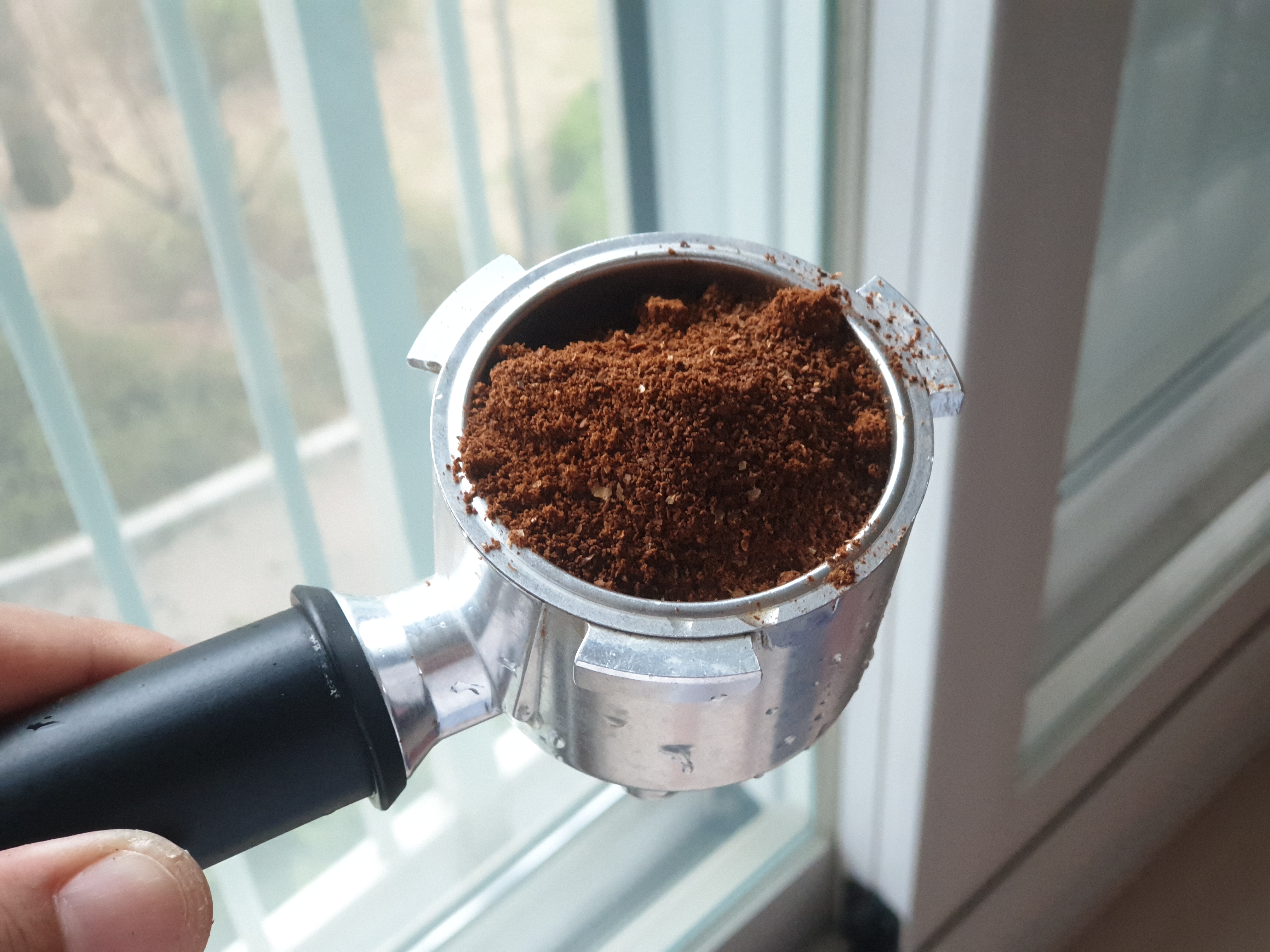 자, 현재 내 에스프레소 머신이 감당할 수 있는 가장 고운 입자로 원두를 갈아서 적용해보자.