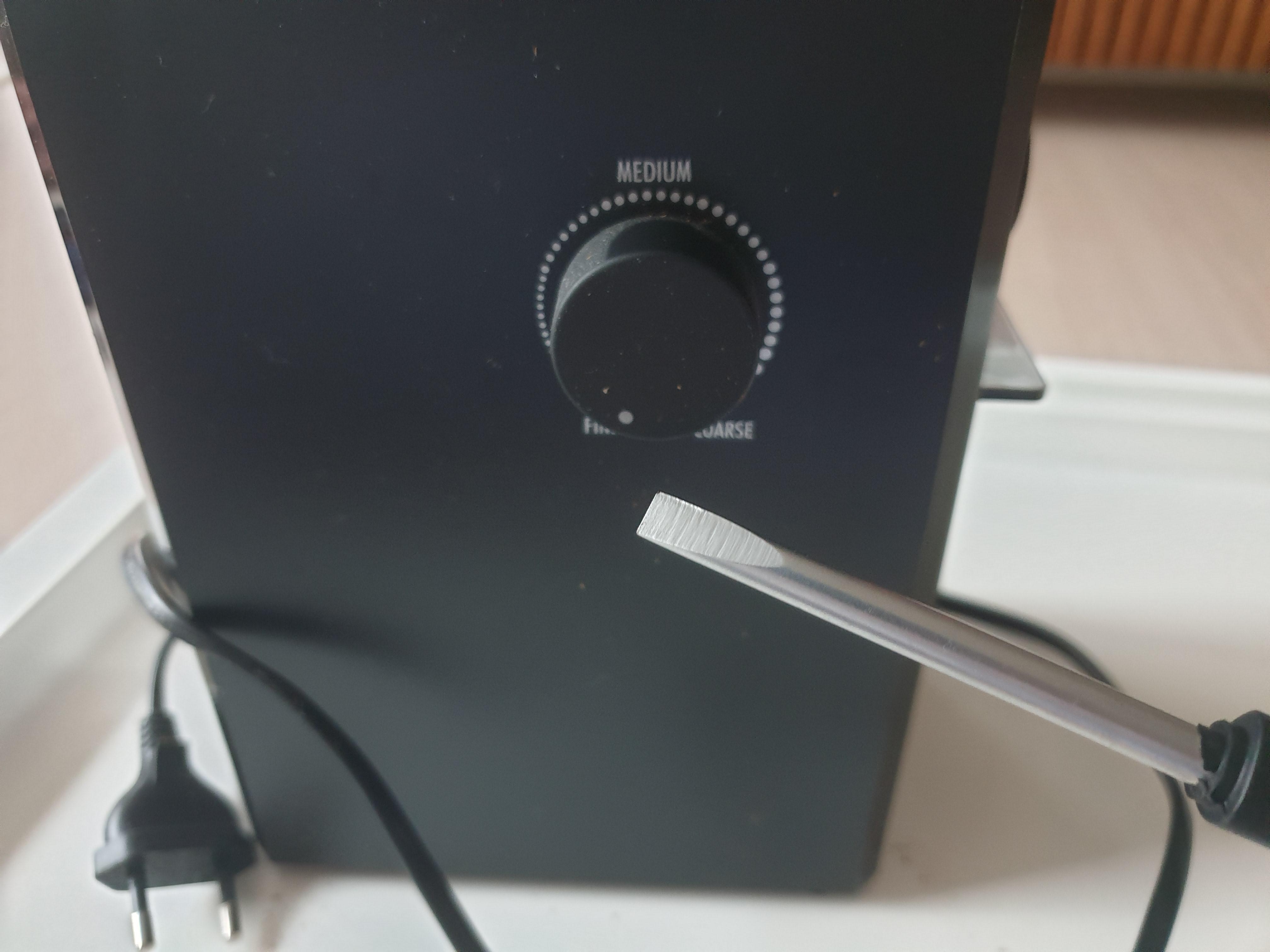 다시 다이얼의 플라스틱 부품을 더 조인치고 고정한다. 그리고 원두를 넣어 다시 갈아본다.