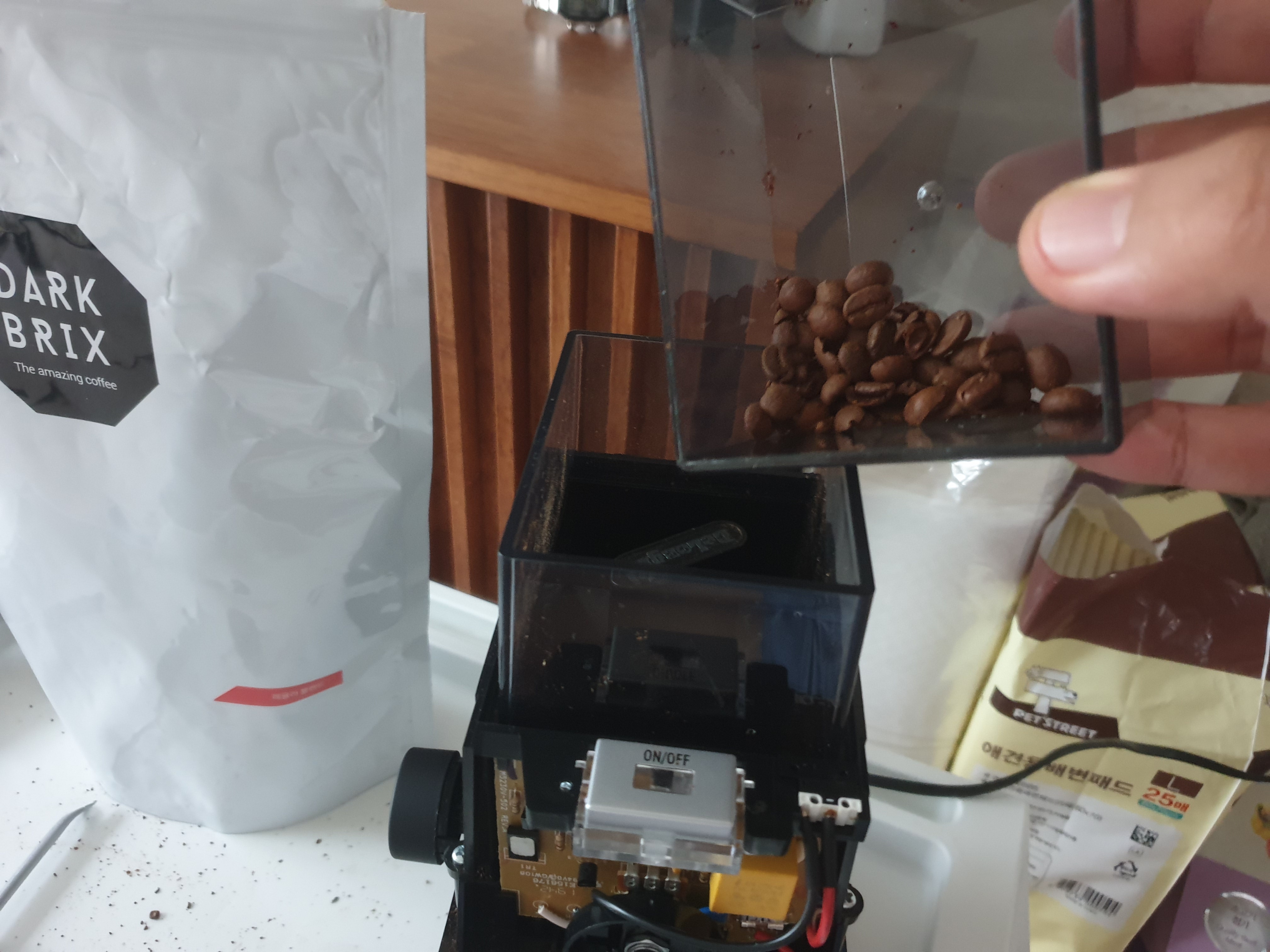 13. 분리해주면 안에 이미 투입되어있던 원두가 많이 들어있었다. 임시로 제거해준다.