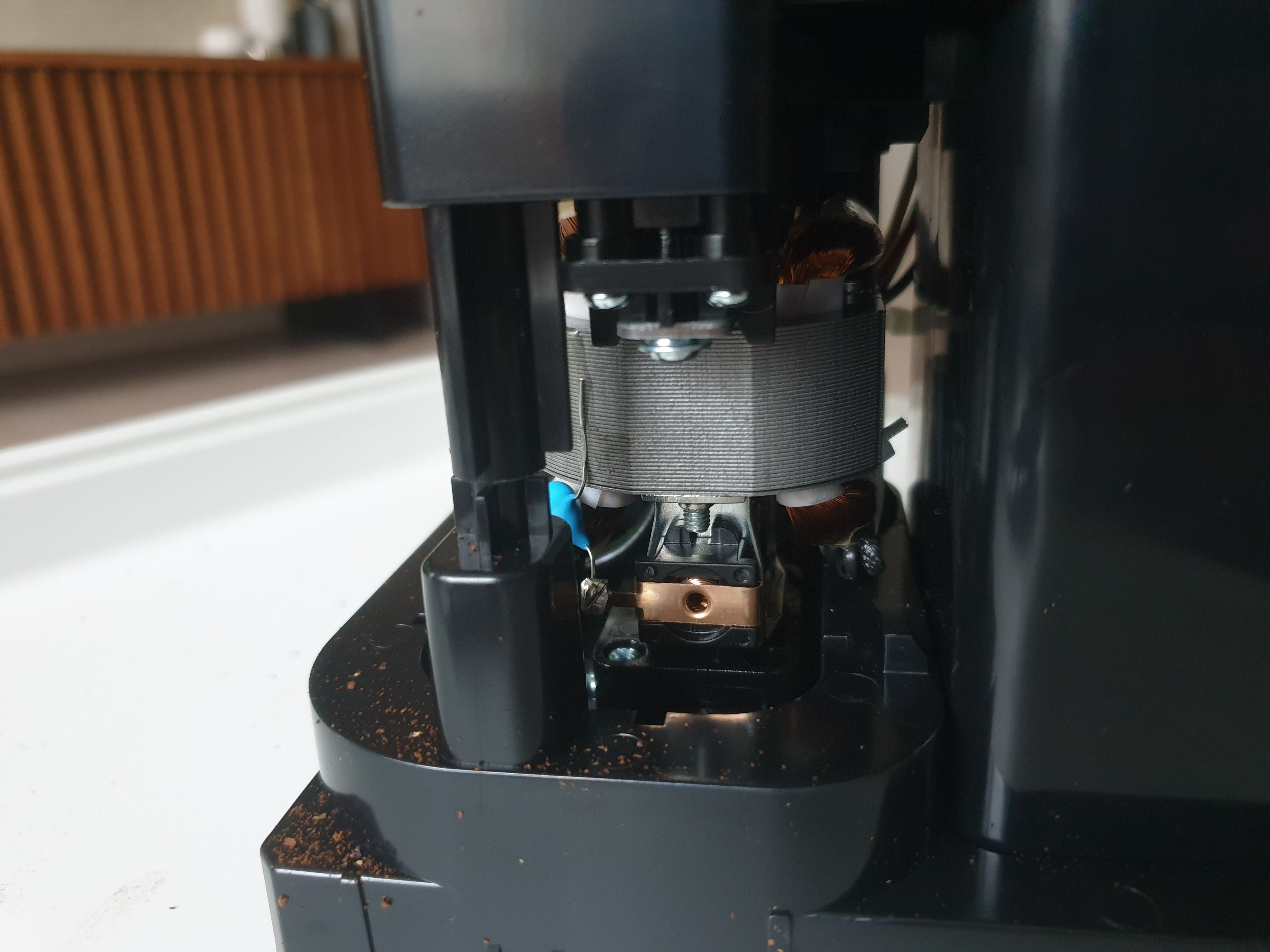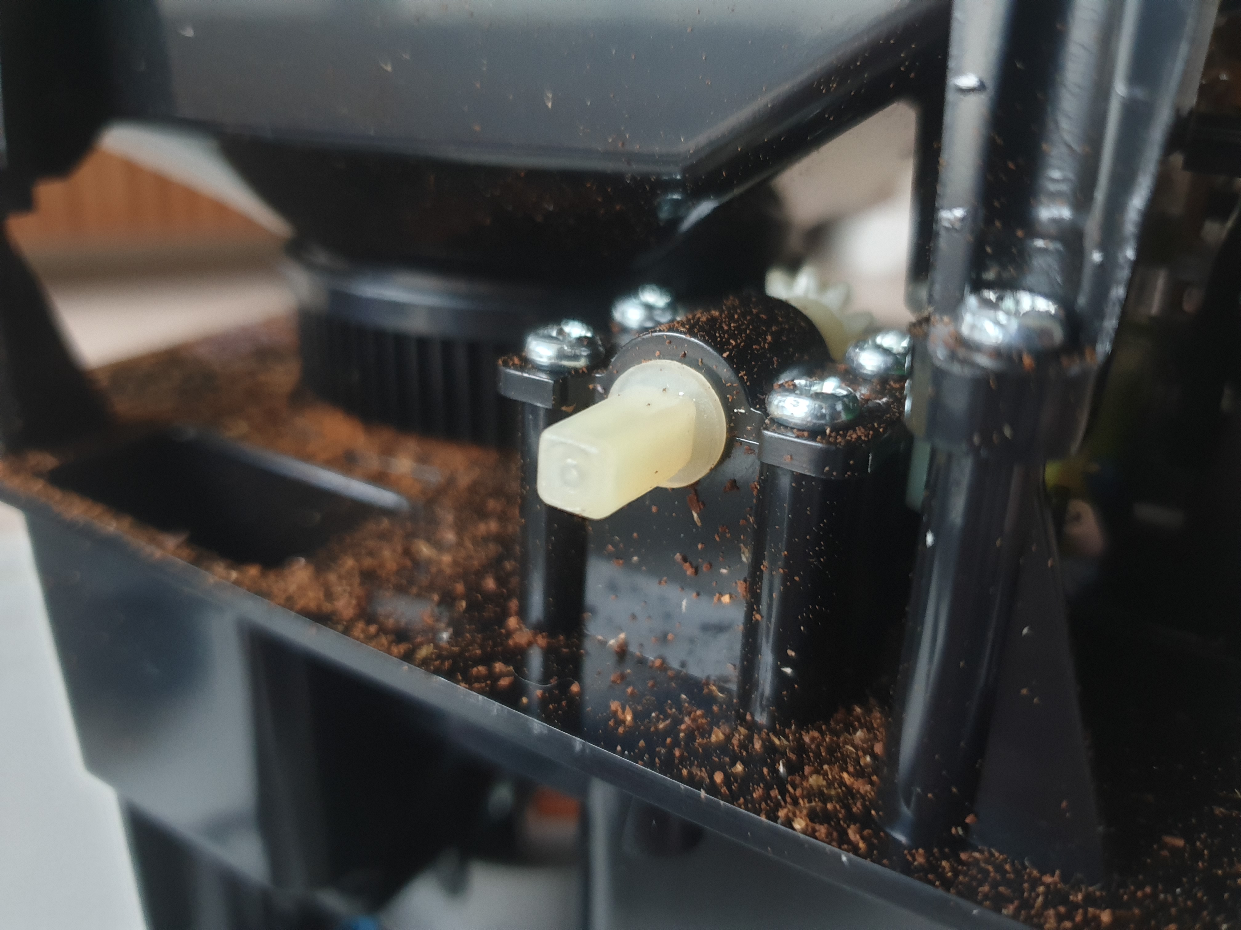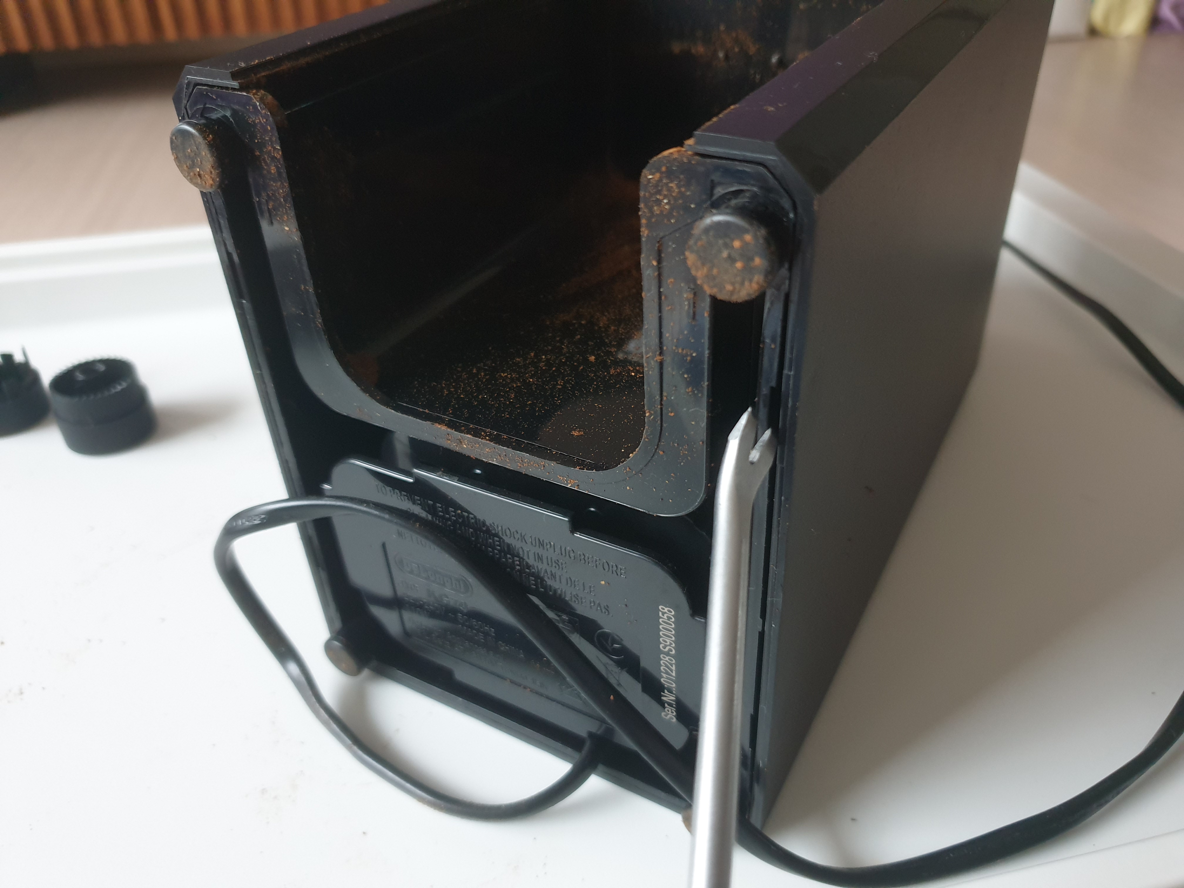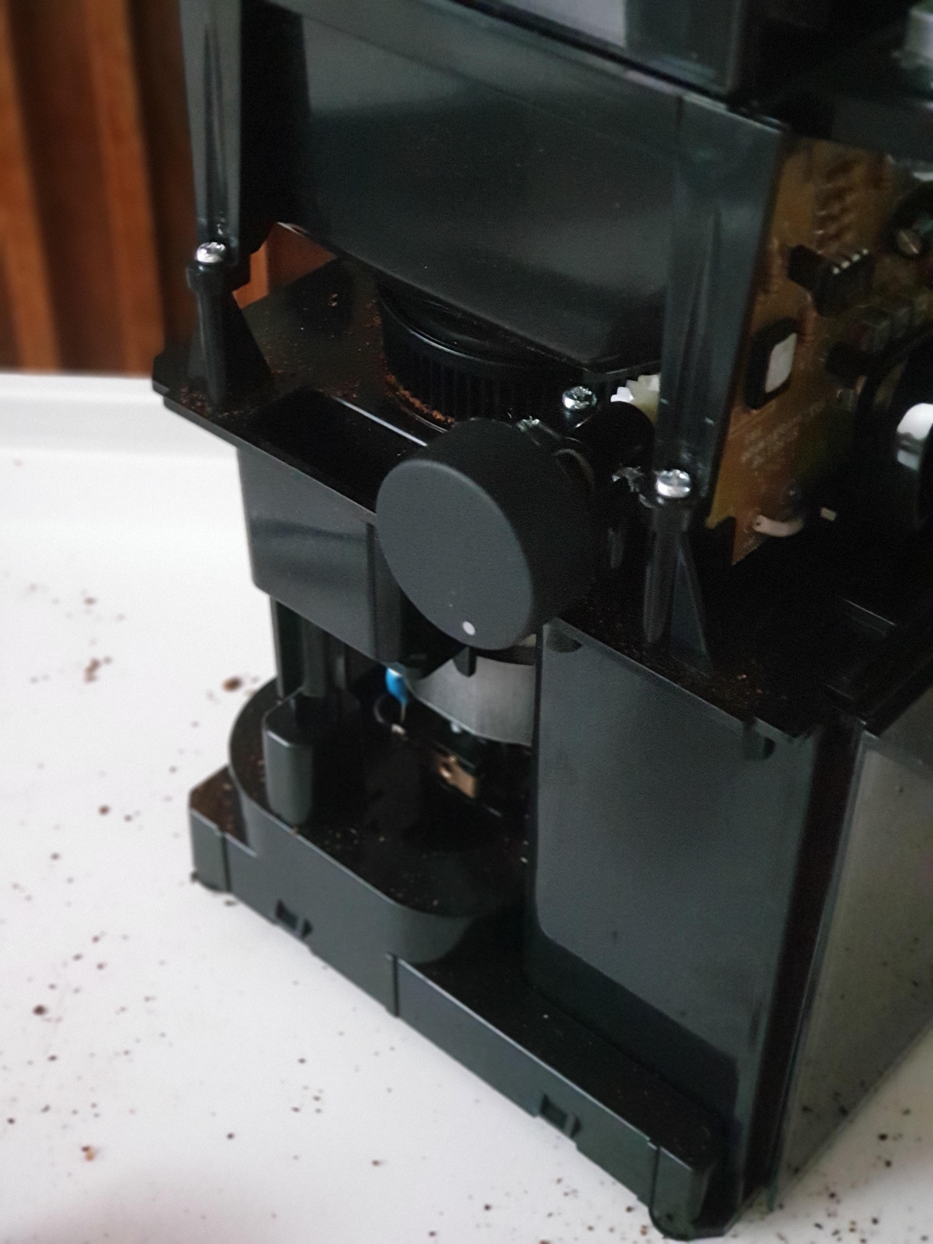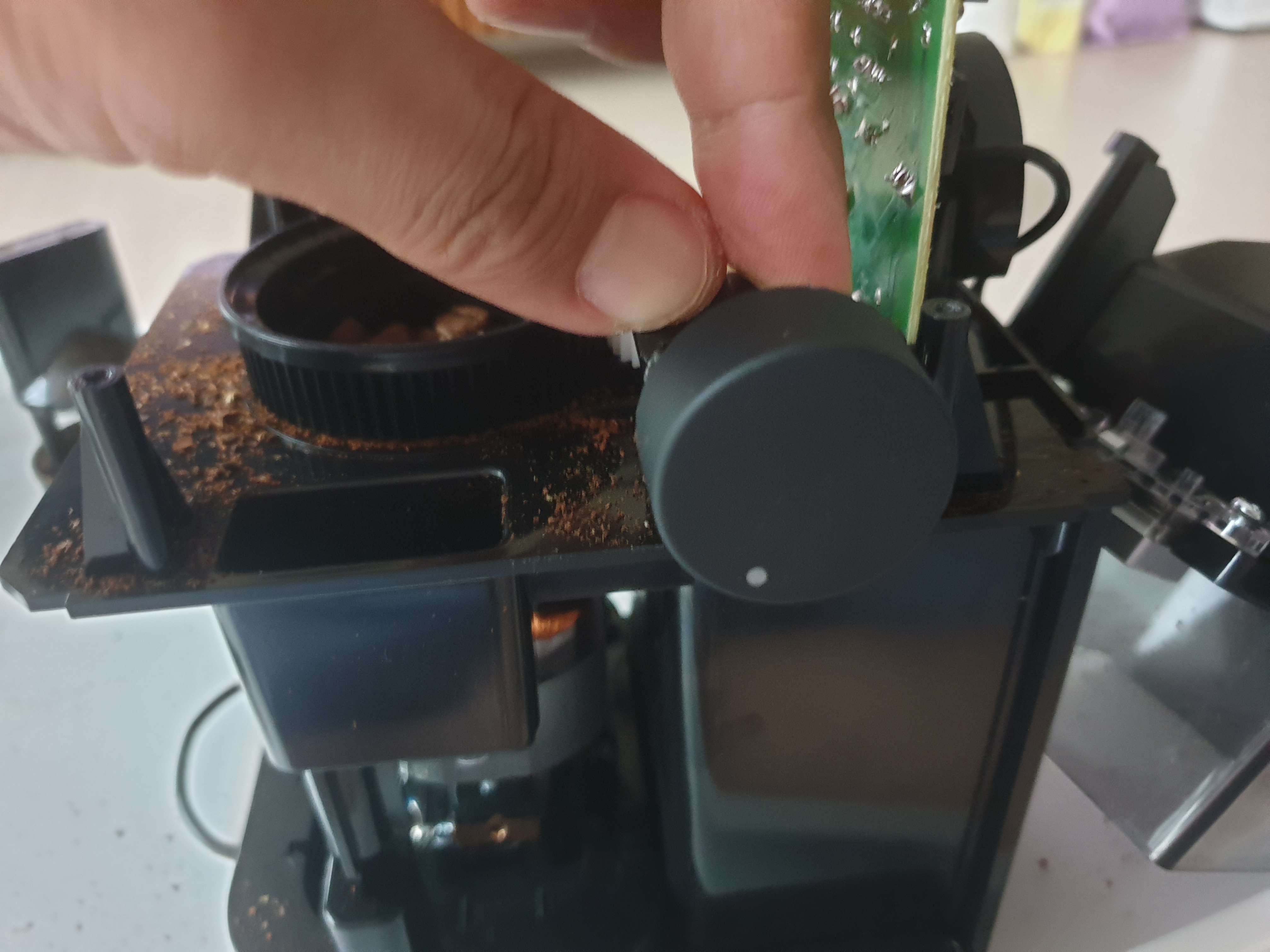 다시 다이얼의 플라스틱 부품을 더 조인치고 고정한다. 그리고 원두를 넣어 다시 갈아본다.