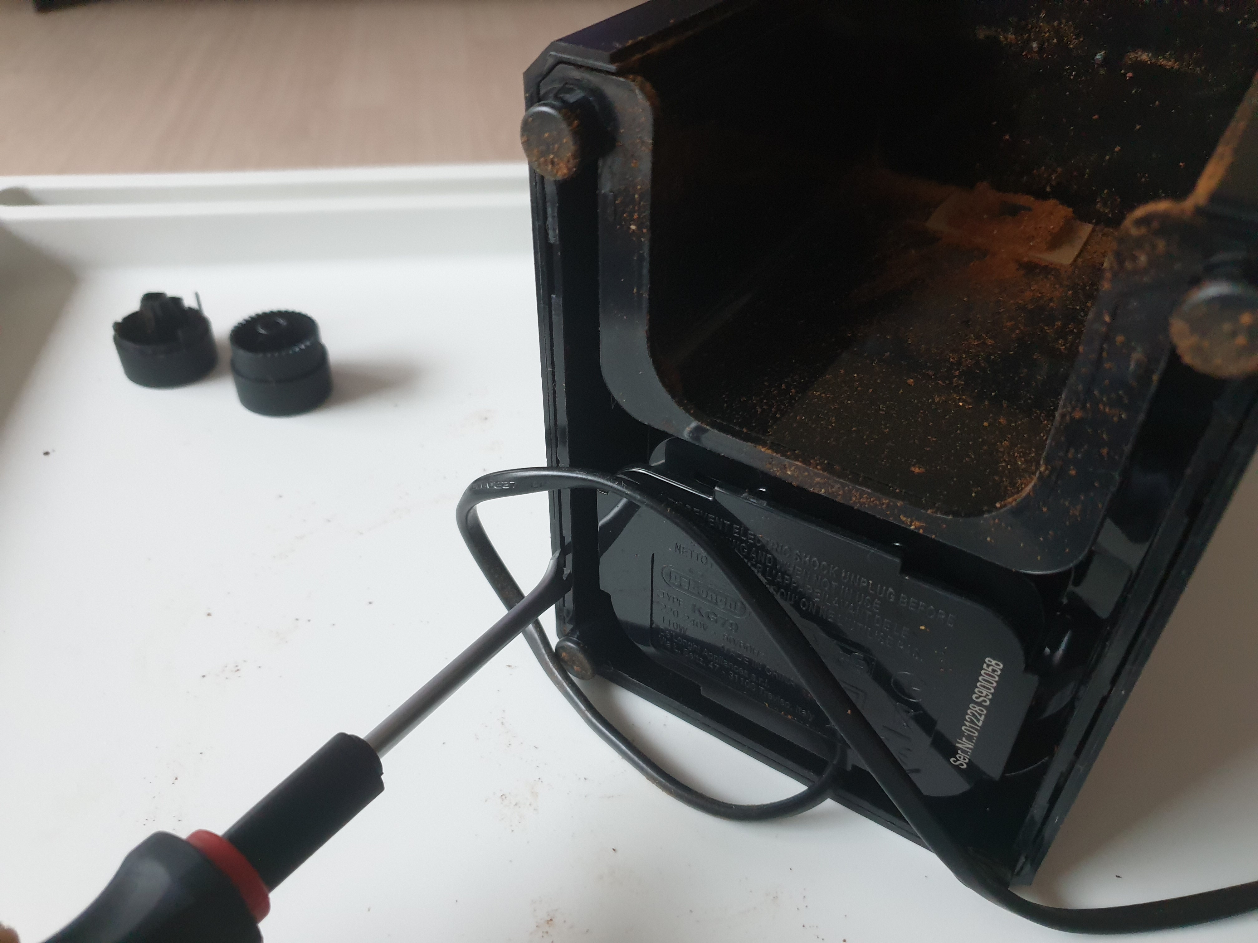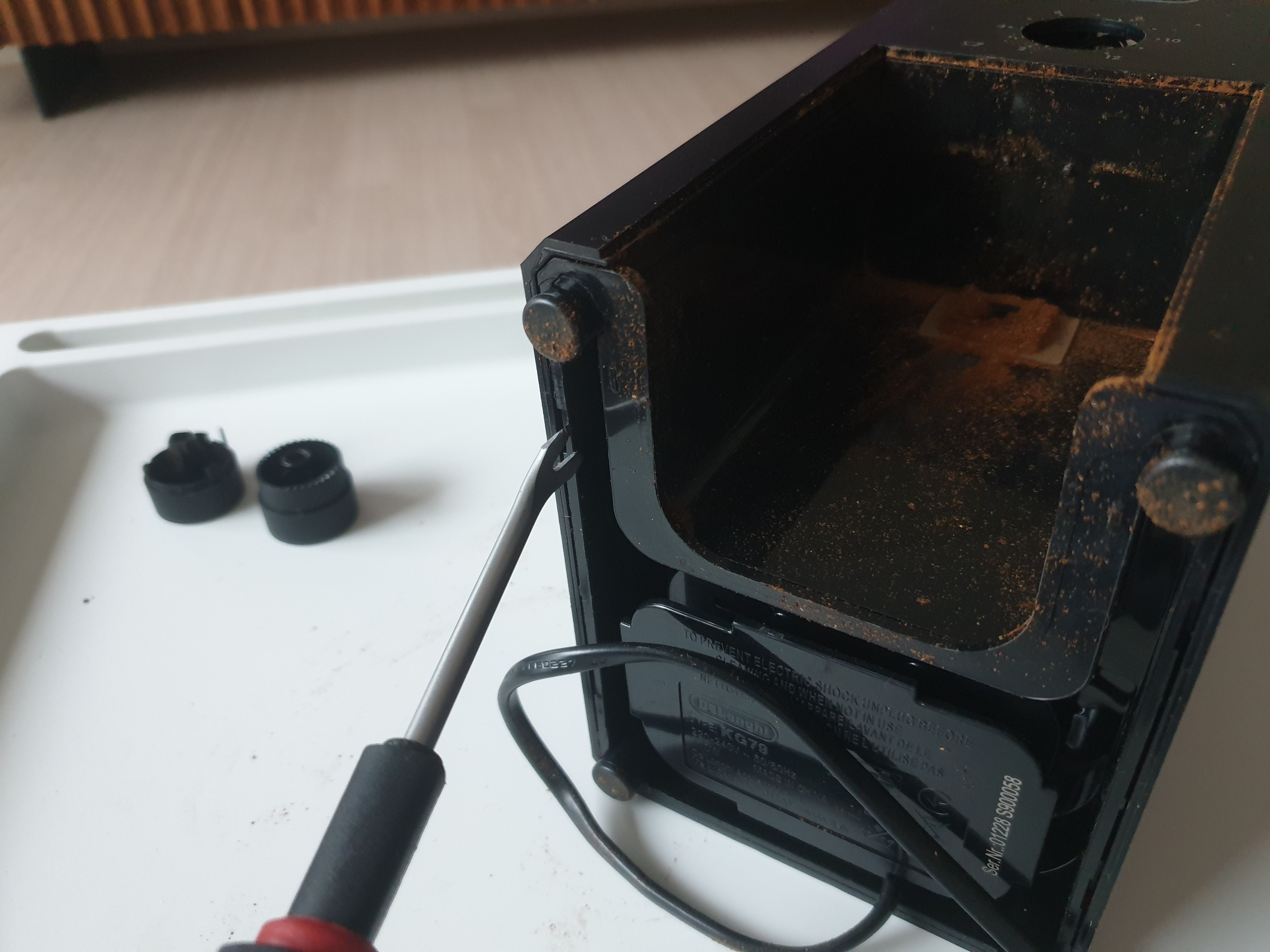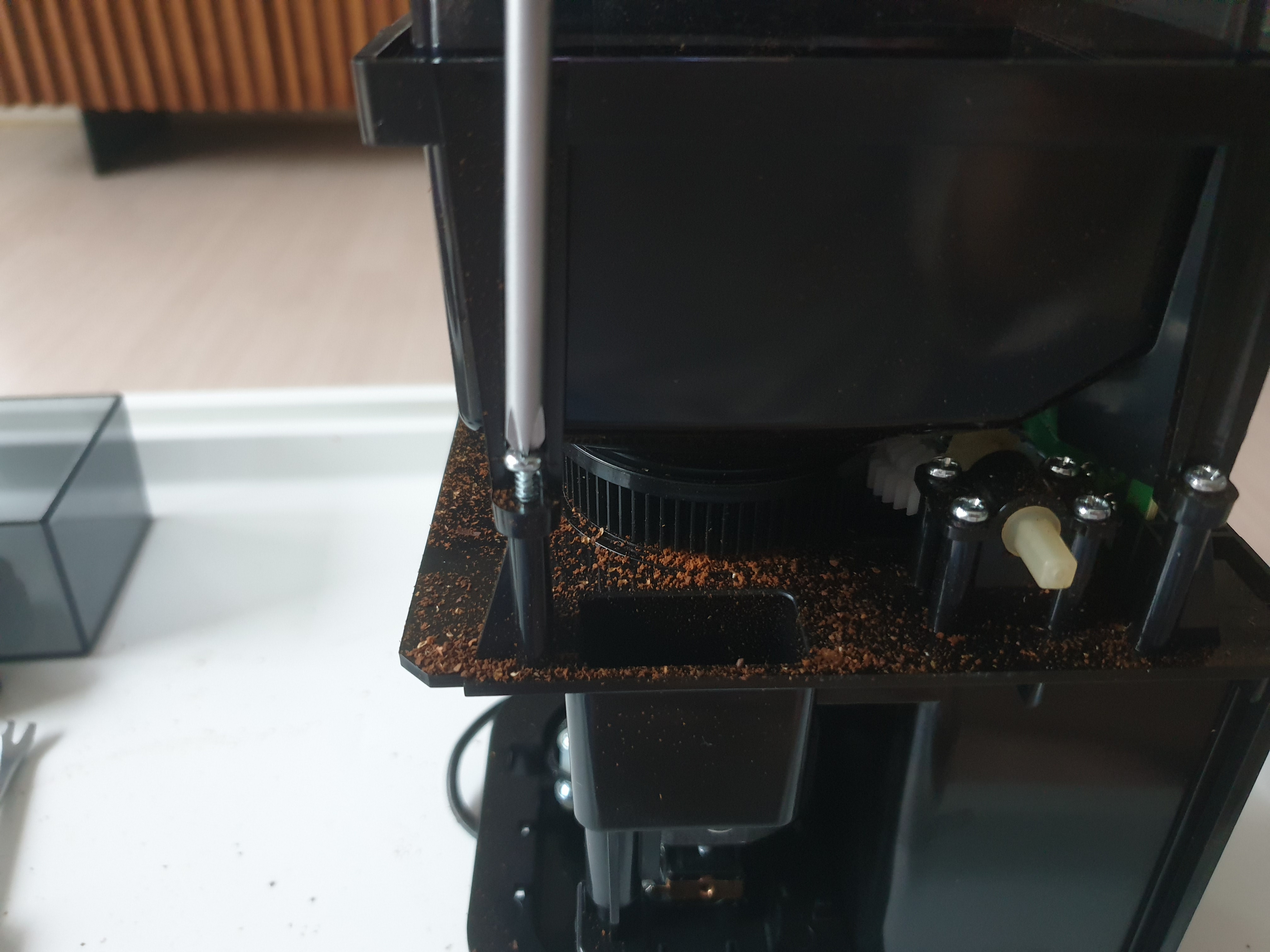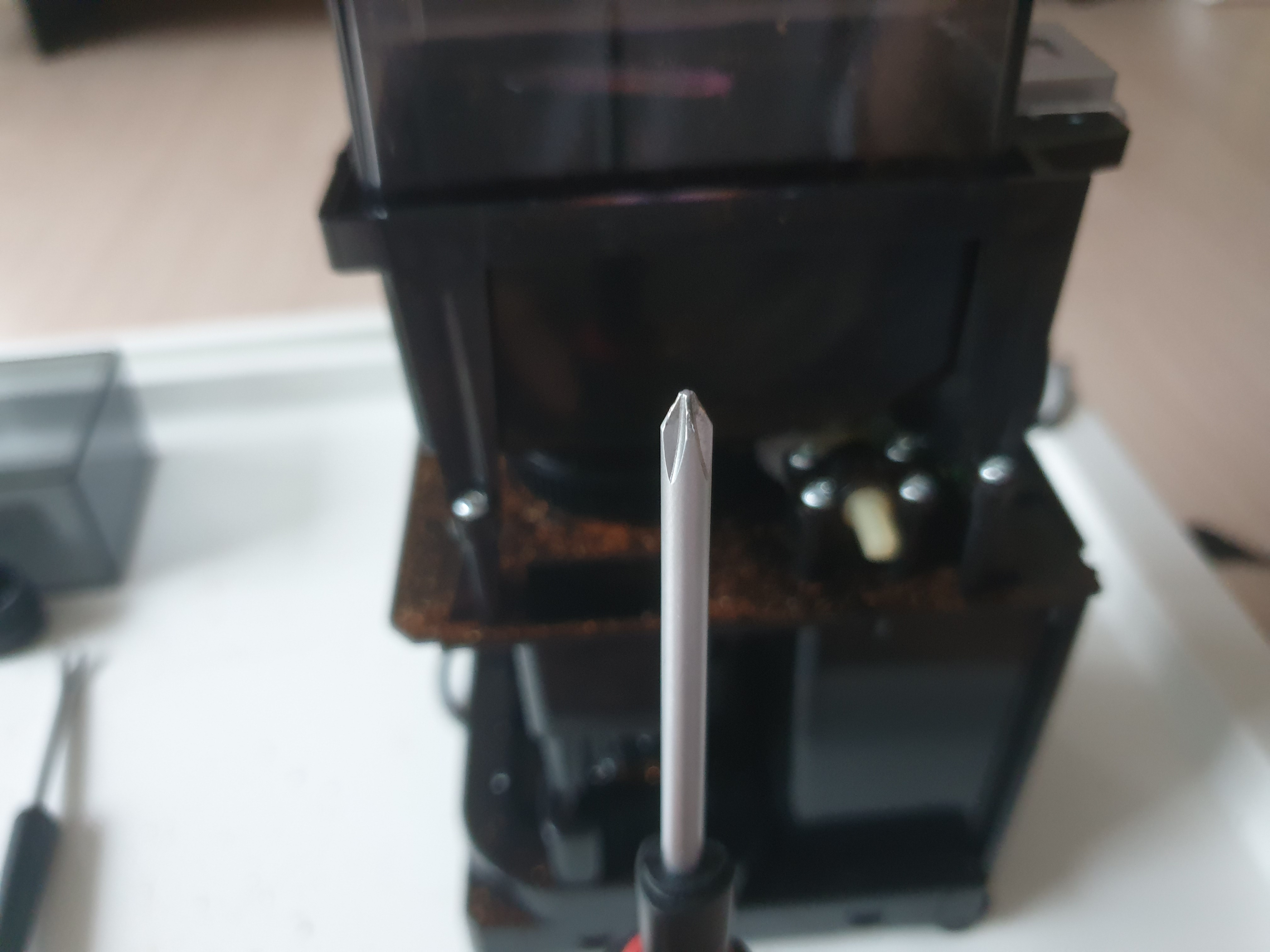 11. 드라이버로 상단 커피 원두통을 분리한다. 네 귀퉁이에 나사만 분리해주면 된다.