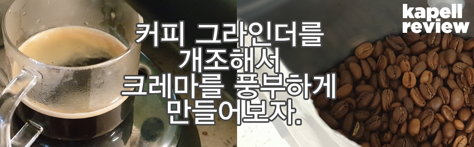 이상, 간단히 커피 그라인더를 개조해서 크레마를 풍부하게 만들어보기였다.