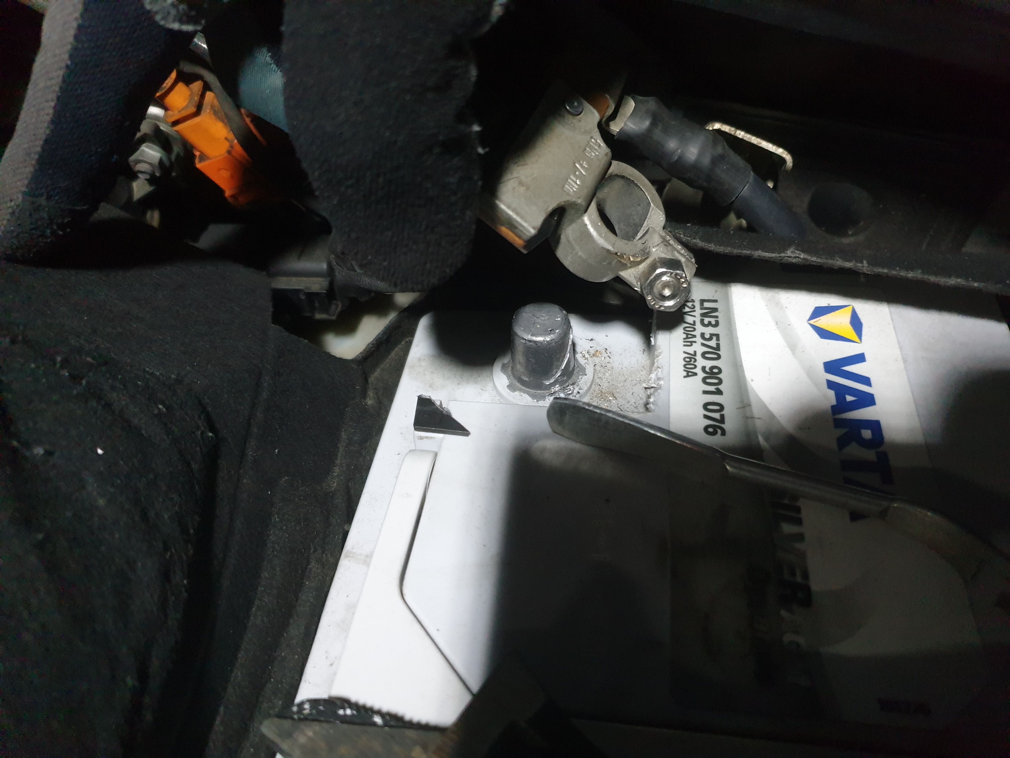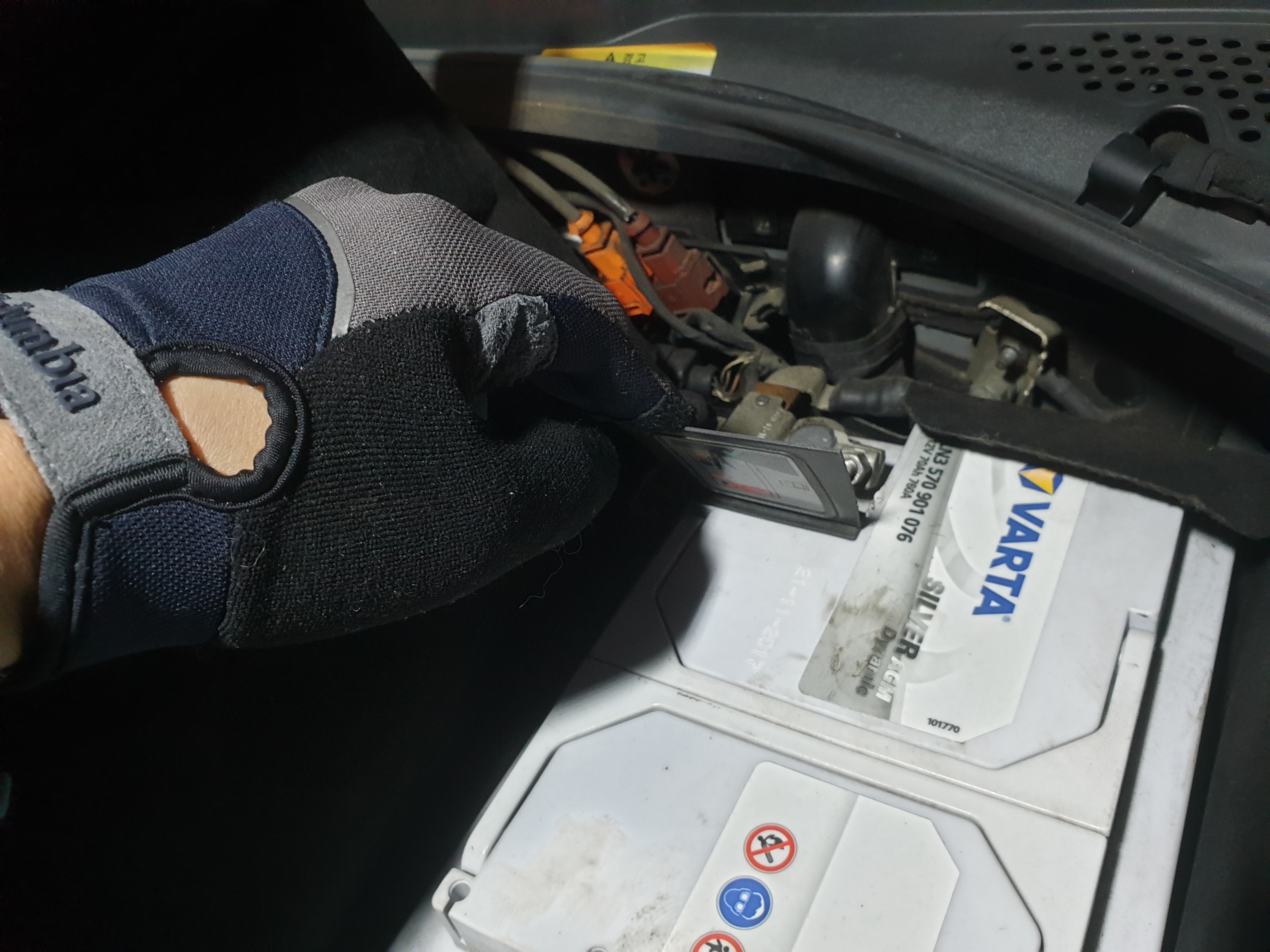 기존 배터리도 바르타 제품이었다. 전원케이블 연결부가 확인된다. 마이너스쪽은 쉽게 분리된다.