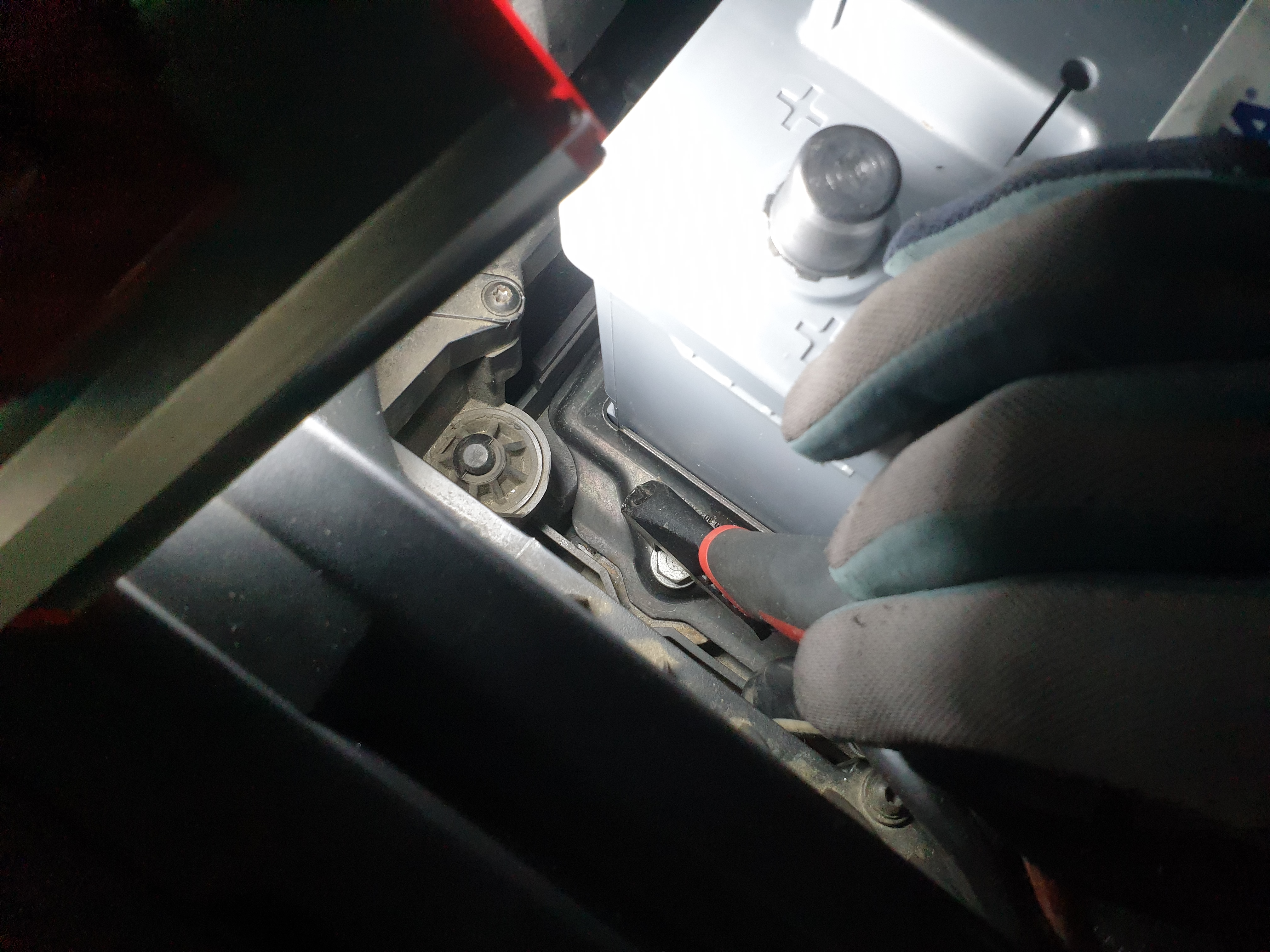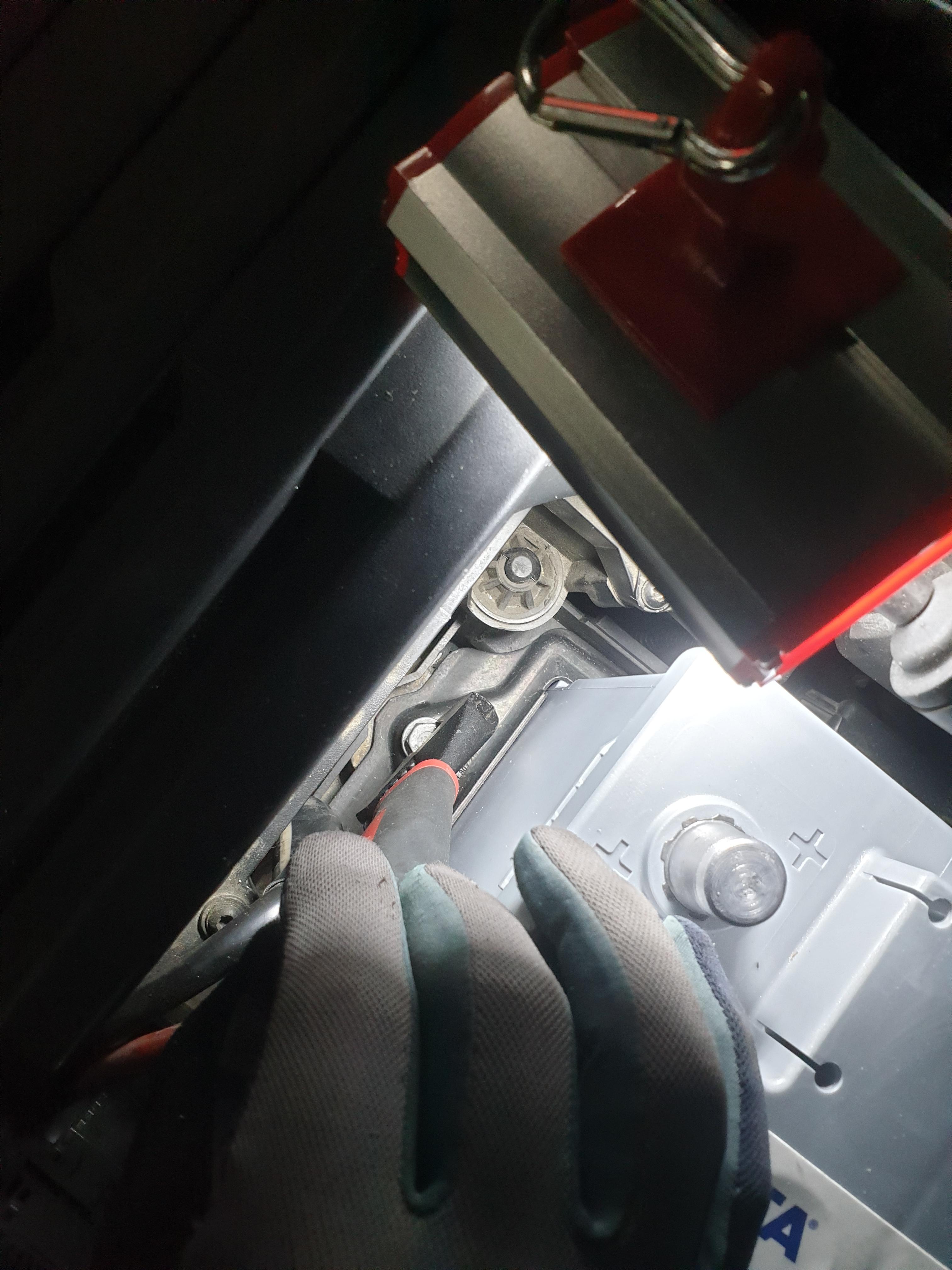 플러스쪽도 마찬가지 방법으로 분리해준다. 그리고 자세히 보면 깊숙한 곳에 배터리를 고정하고 있는 볼트가 보인다. 이걸 몽키스패너만으로 제거해야하는데 늘 이게 너무 힘들었다.