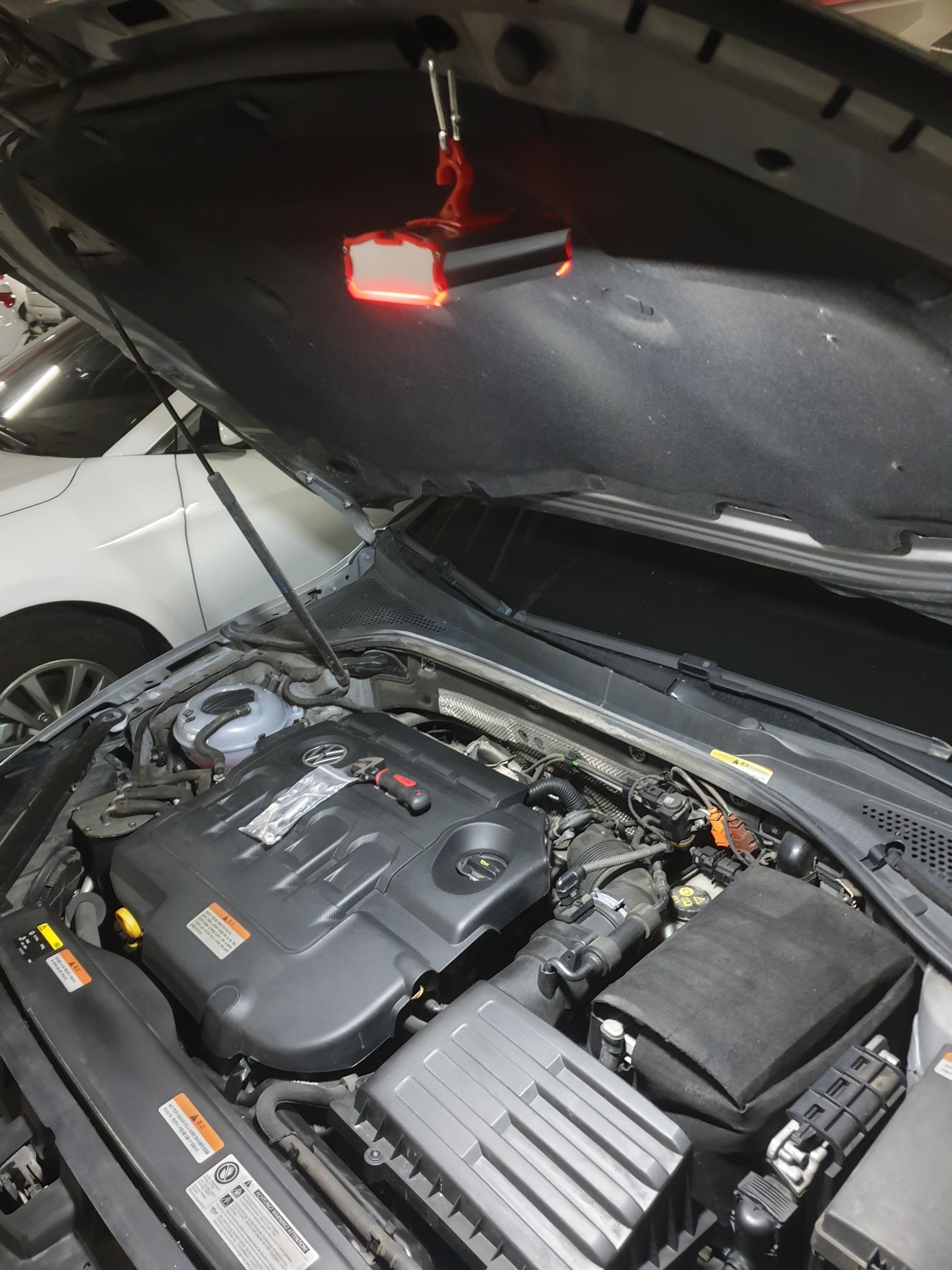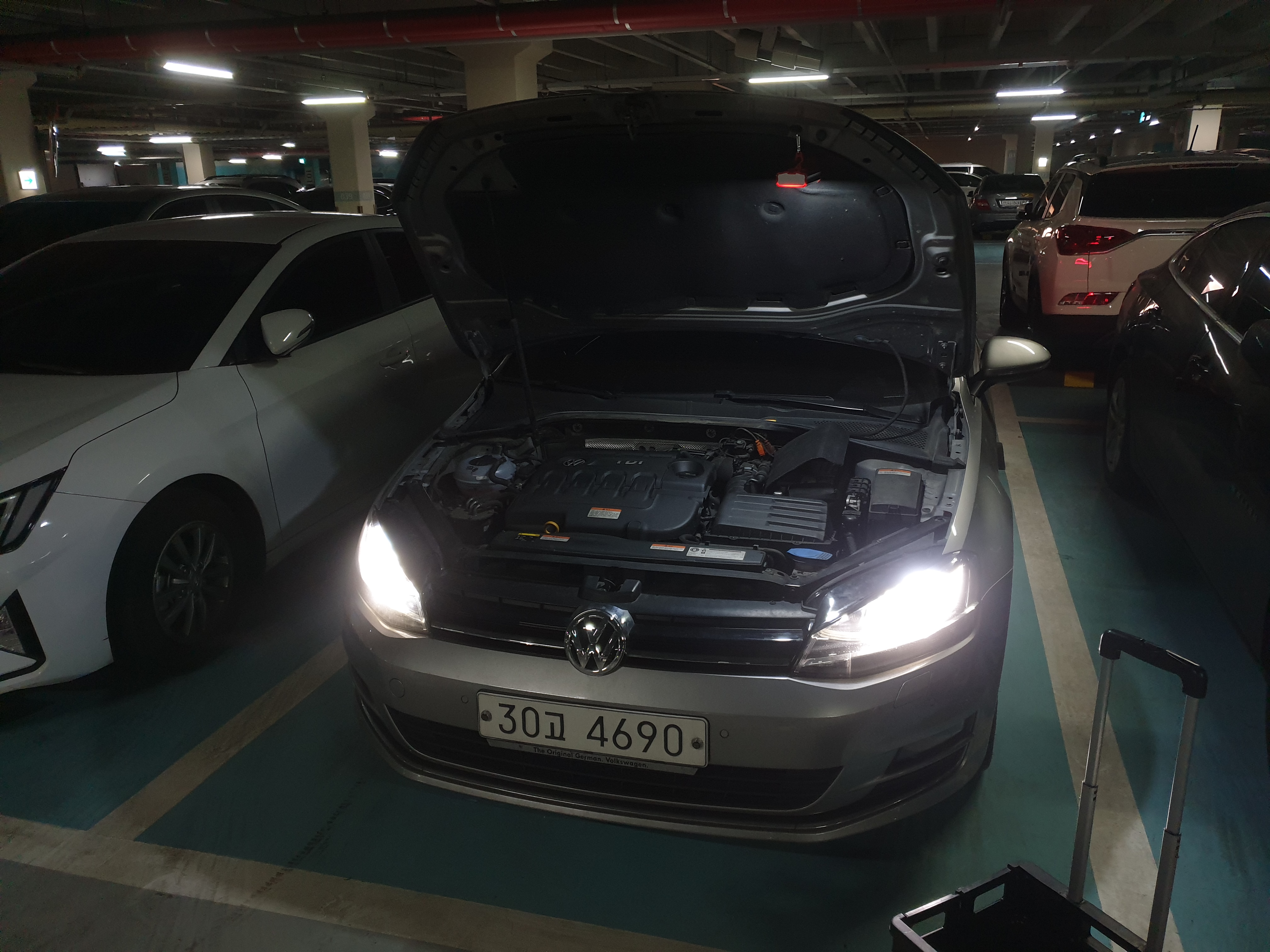 작업에 충분한 밝기가 제공되었다. 나름 깔끔하게 관리된 엔진룸. 우측 상단에 배터리가 보인다.