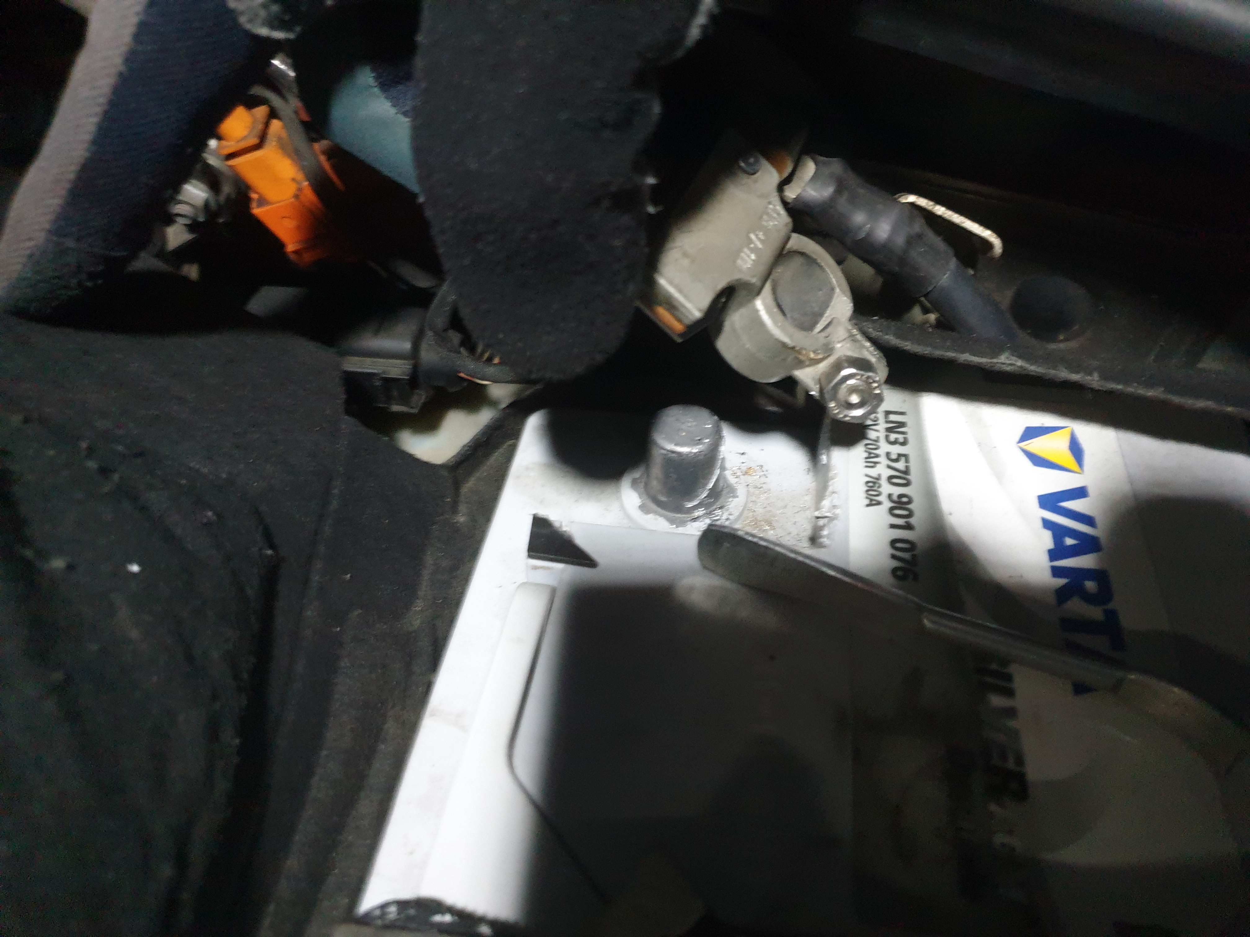 기존 배터리도 바르타 제품이었다. 전원케이블 연결부가 확인된다. 마이너스쪽은 쉽게 분리된다.