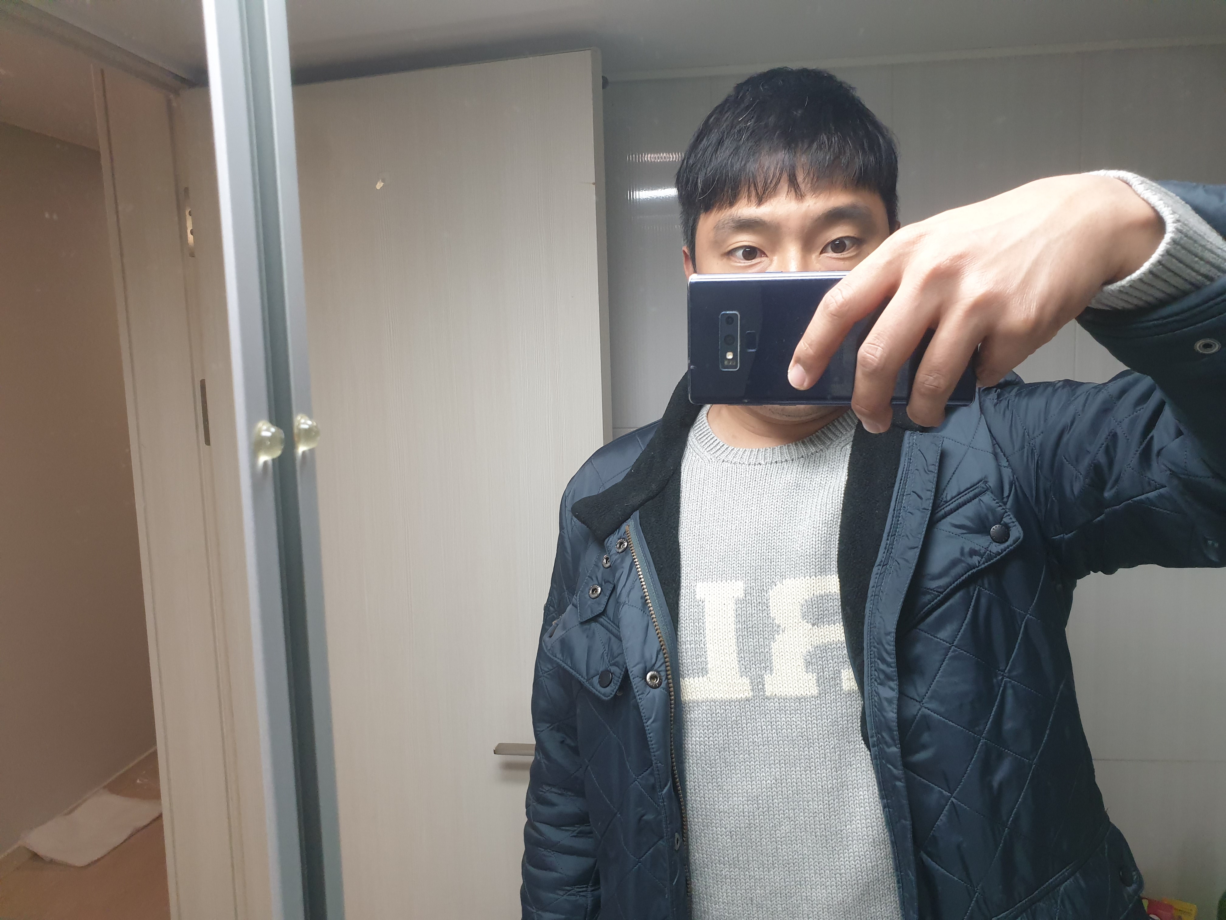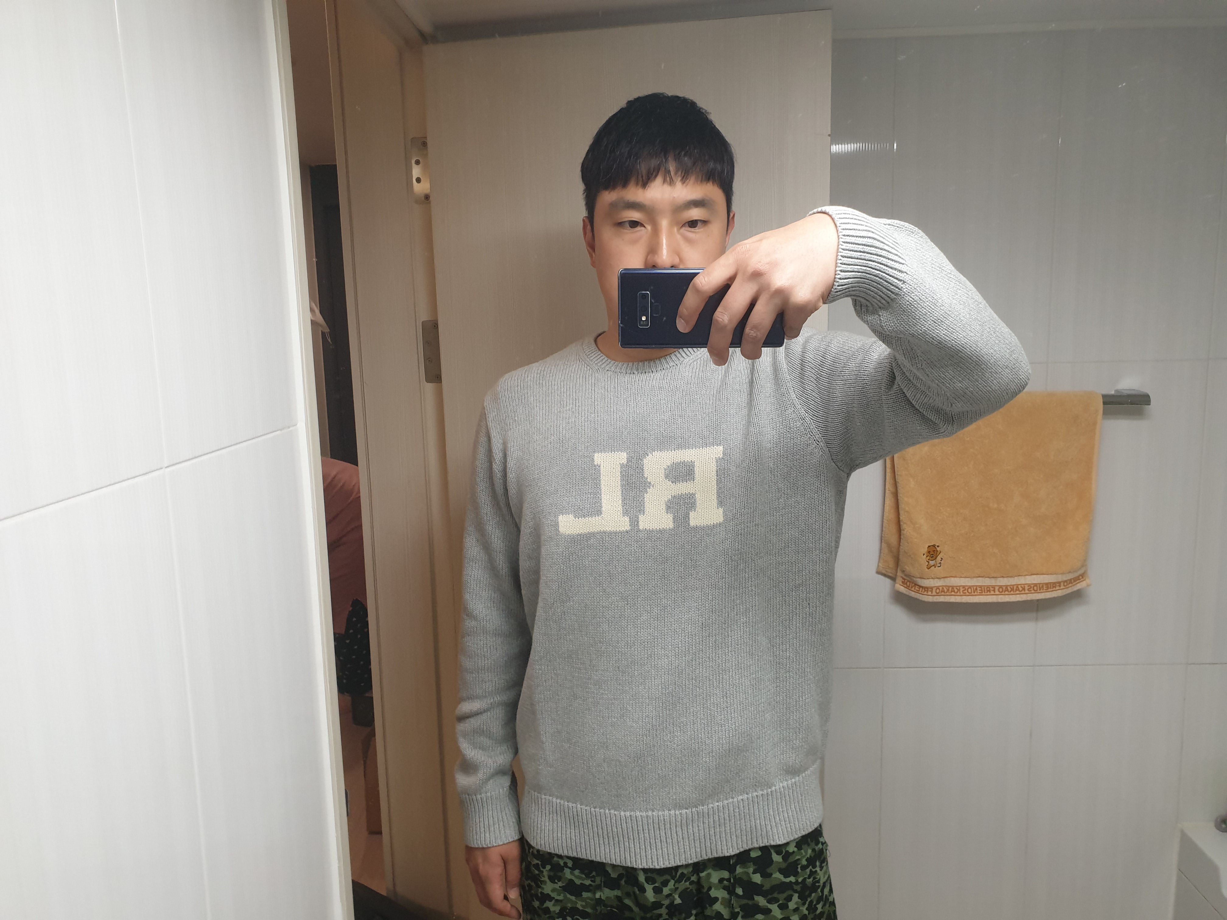 입어보았다. 잠옷 위에 그대로 입어보았다. 사이즈 고민을 열심히 했던 보람이 있는데? Just fitted.