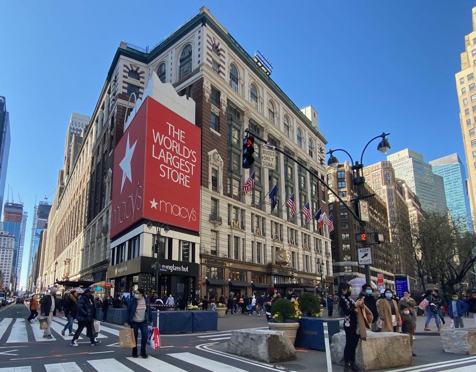 메이시스는 세계에서 가장 큰 백화점이었다. 이제 한국의 신세계 센텀시티(부산)에 그 지위를 넘겨주기는 했지만.