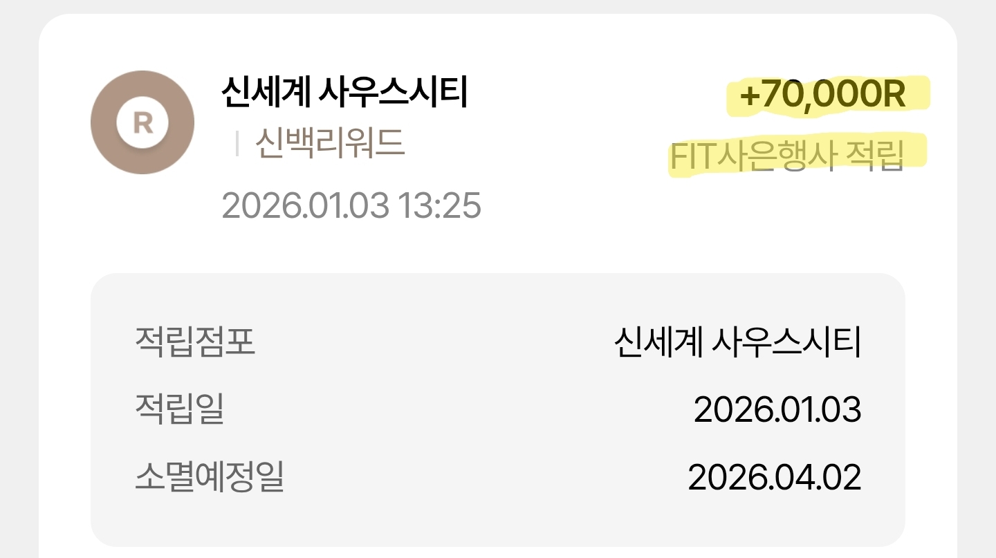 물론 한섬닷컴에서 구입해도 한섬마일리지 약 6만점을 받을 수 있으나 더욱 저럼하게 구입한 것이다. 사용처도 더 자유로운 신백포인트를 받았다.