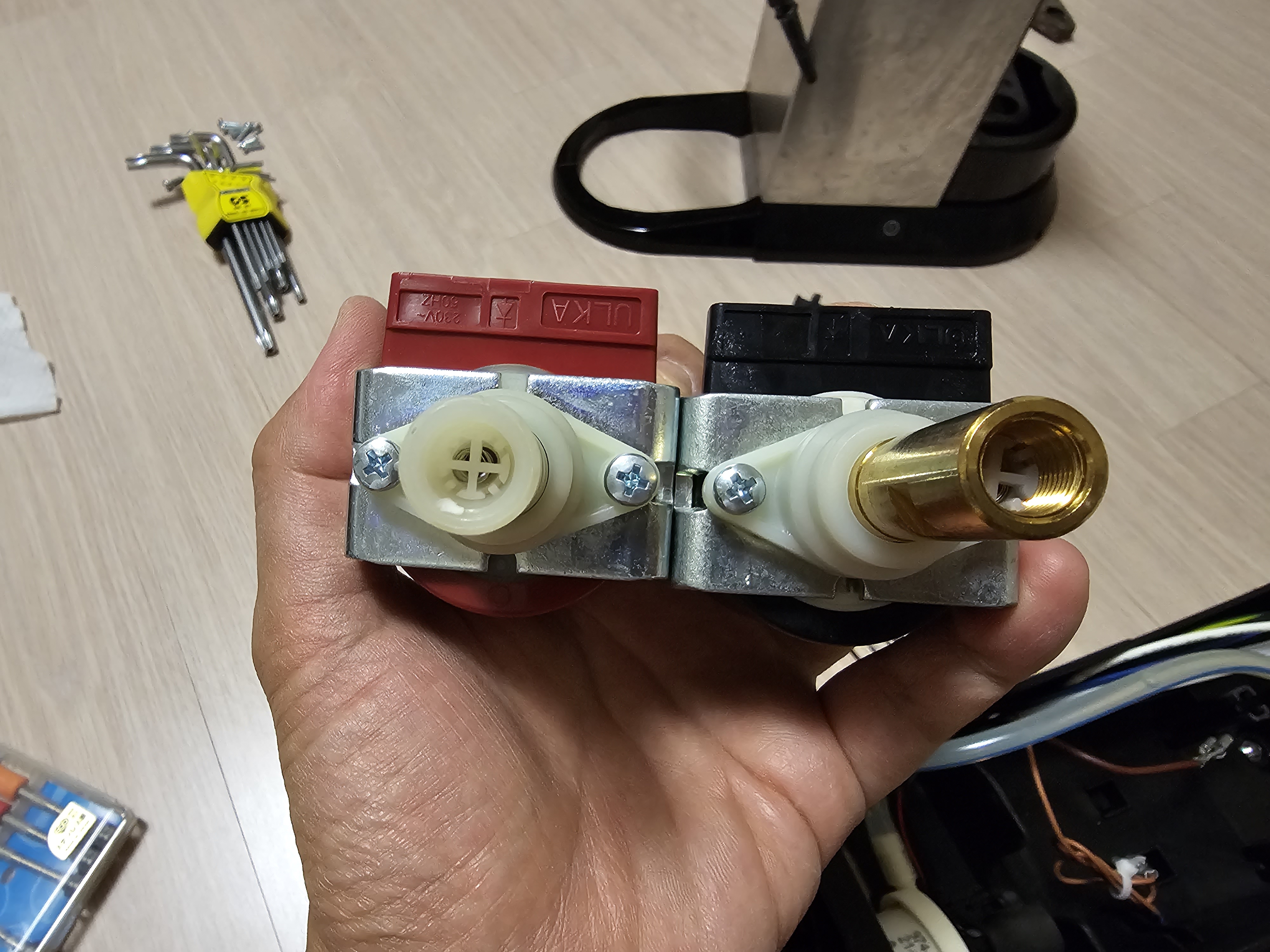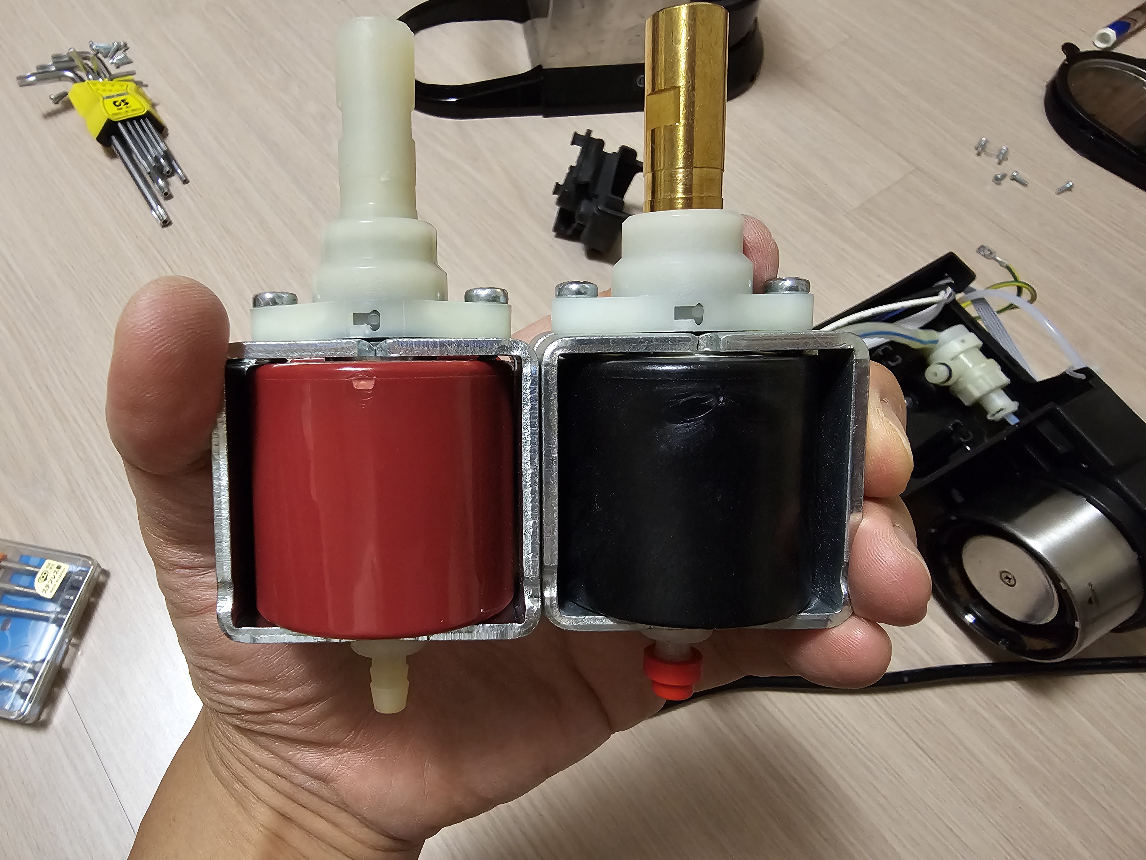 누님댁에 커피머신을 새로 들였는데 이 모델의 펌프가 50HZ 라 60HZ인 국내주파수용 펌프로 바꾸면 훨씬 성능이 업그레이드된다고 교체를 부탁받았습니다. 펌프를 주문하고 공구를 준비해서 분해