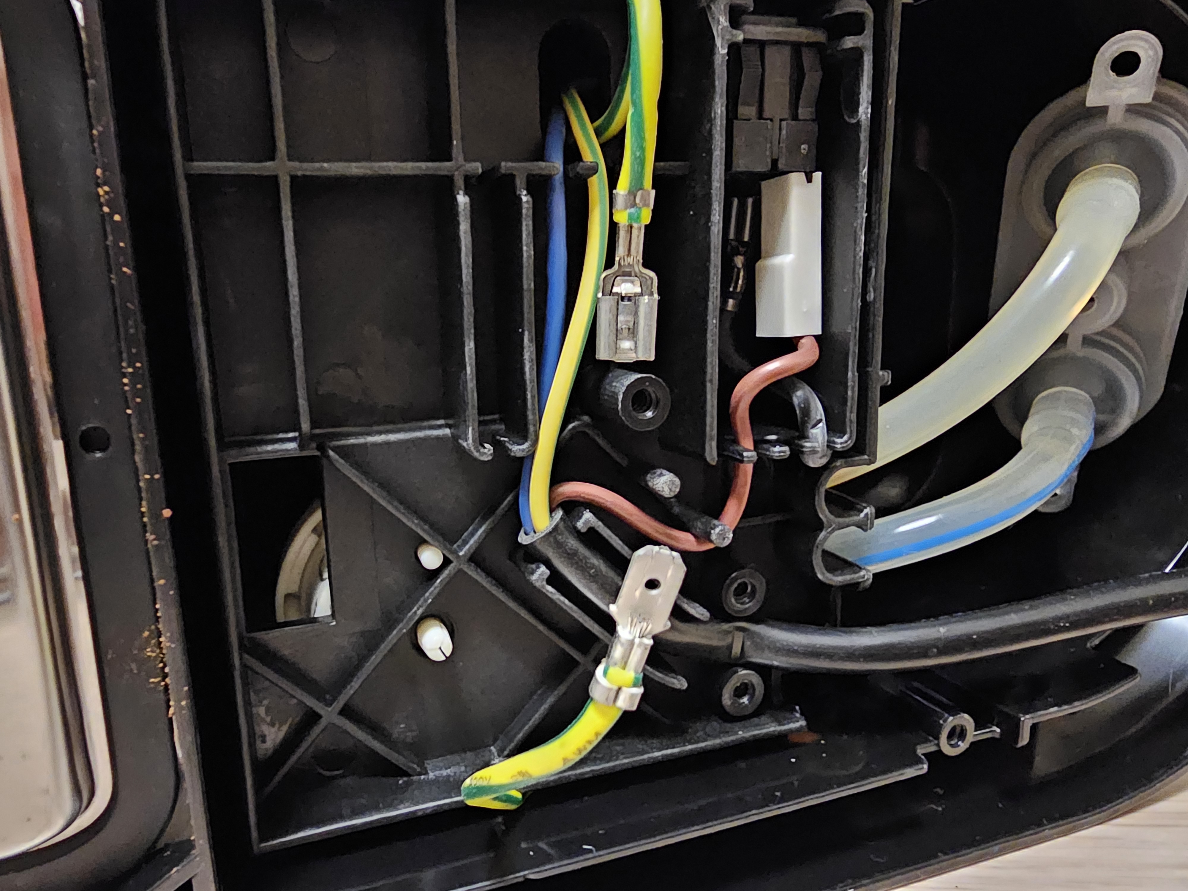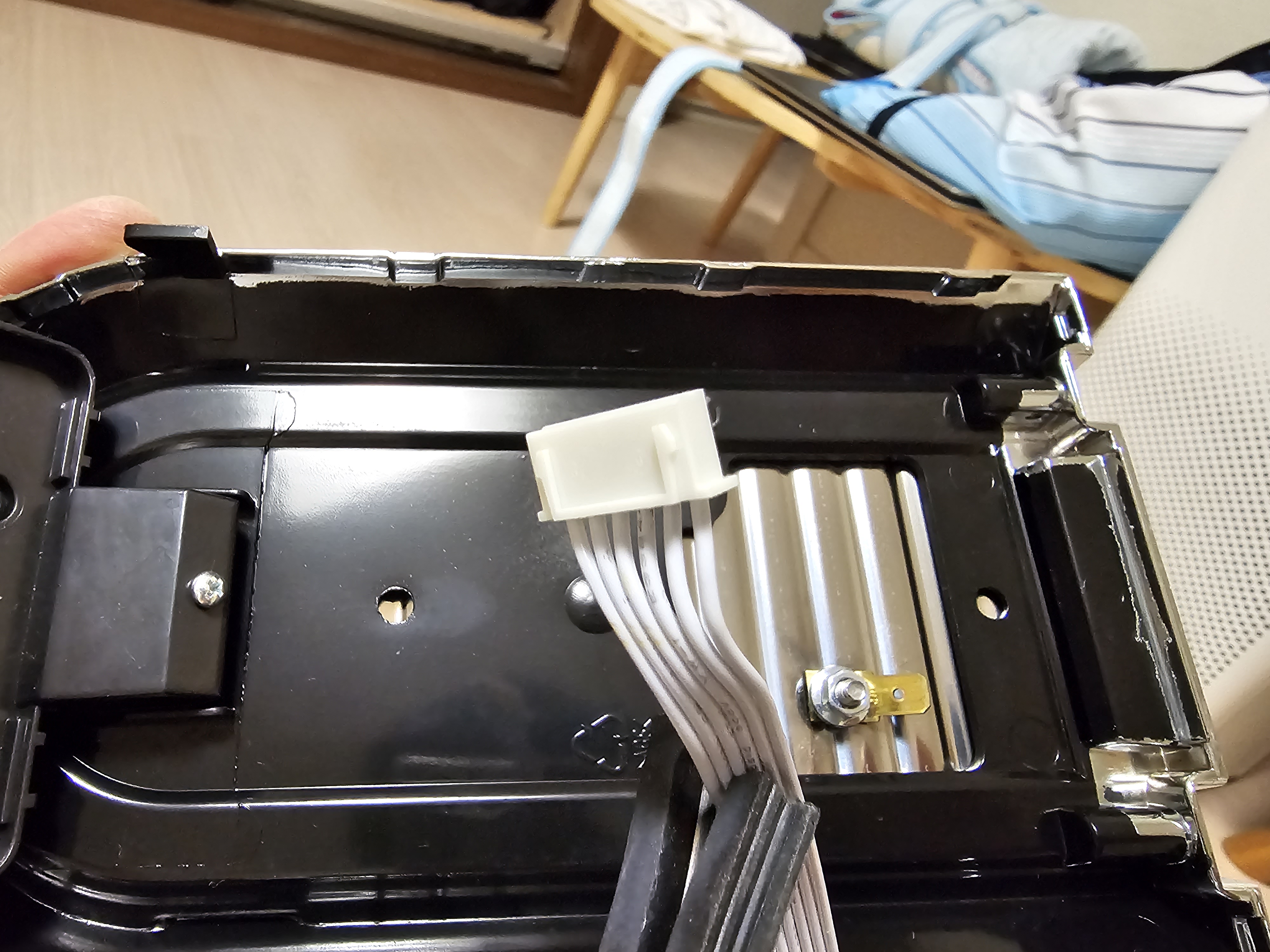 여기는 상단부다. 상단부의 경우는 전면 조작부로 가는 전원 케이블과 데이터 케이블이 연결되어있어 먼저 분리해준다.