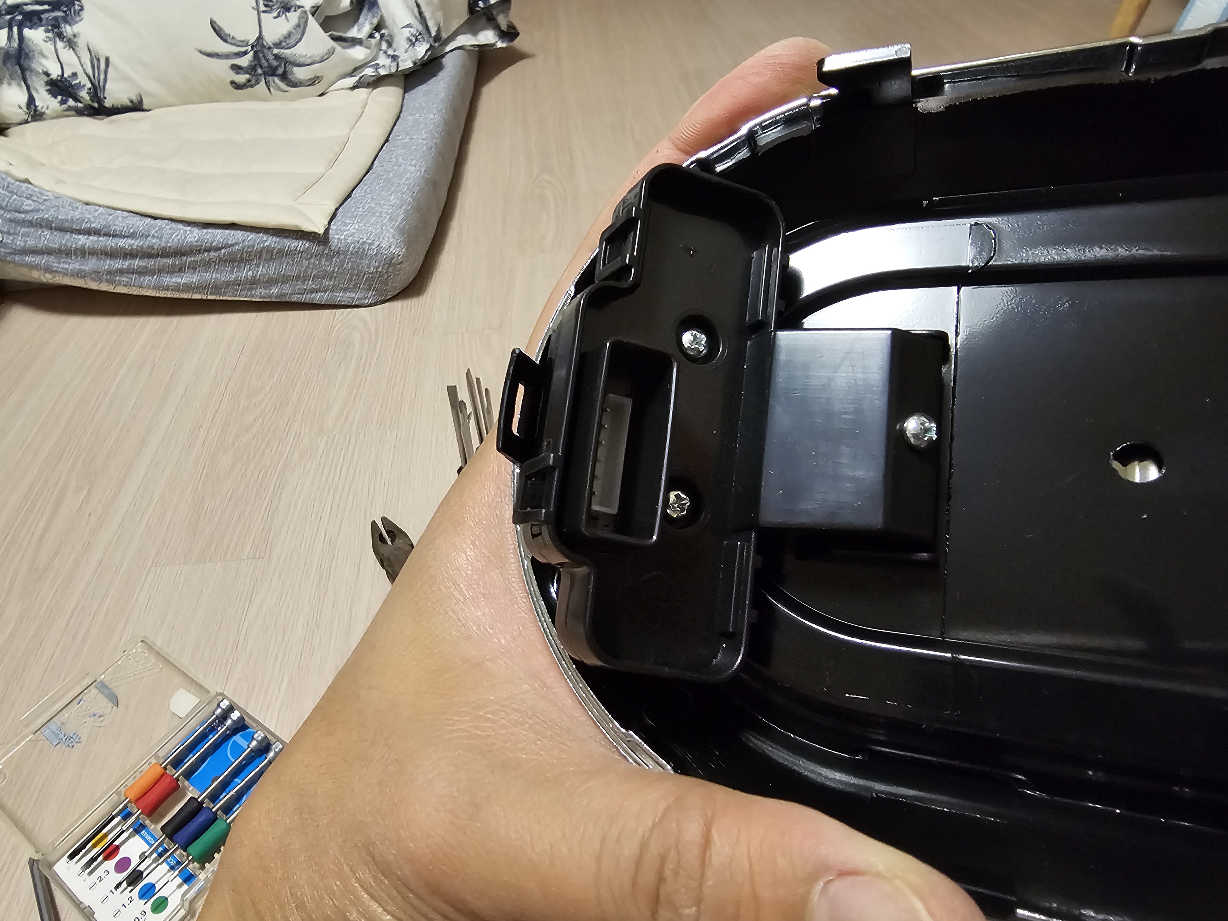 여기서 분리의 이유를 설명드려야 하겠다. 바닥을 뜯었으나 본체를 하우징과 분리하기 위해 여길 통과하는 케이블들은 분리를 해줘야 한다.