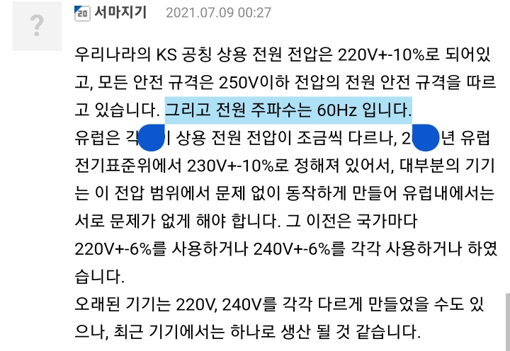이 글을 읽고 계신 분들 중 누구도 가전제품을 구입할때 국내 전기와의 정합성을 체크해보지는 않을 것이다. 그러나 이번 포스팅으로 해외직구한 제품을 사용할때는 그것이 꽤 필요하며, 유의미한 성능 차이를 내기에 꼭 필요한 것을 확인할 수 있었다. 특히 모터/펌프같이 단위 시간당 회전수에 민감한 제품은 말이다.