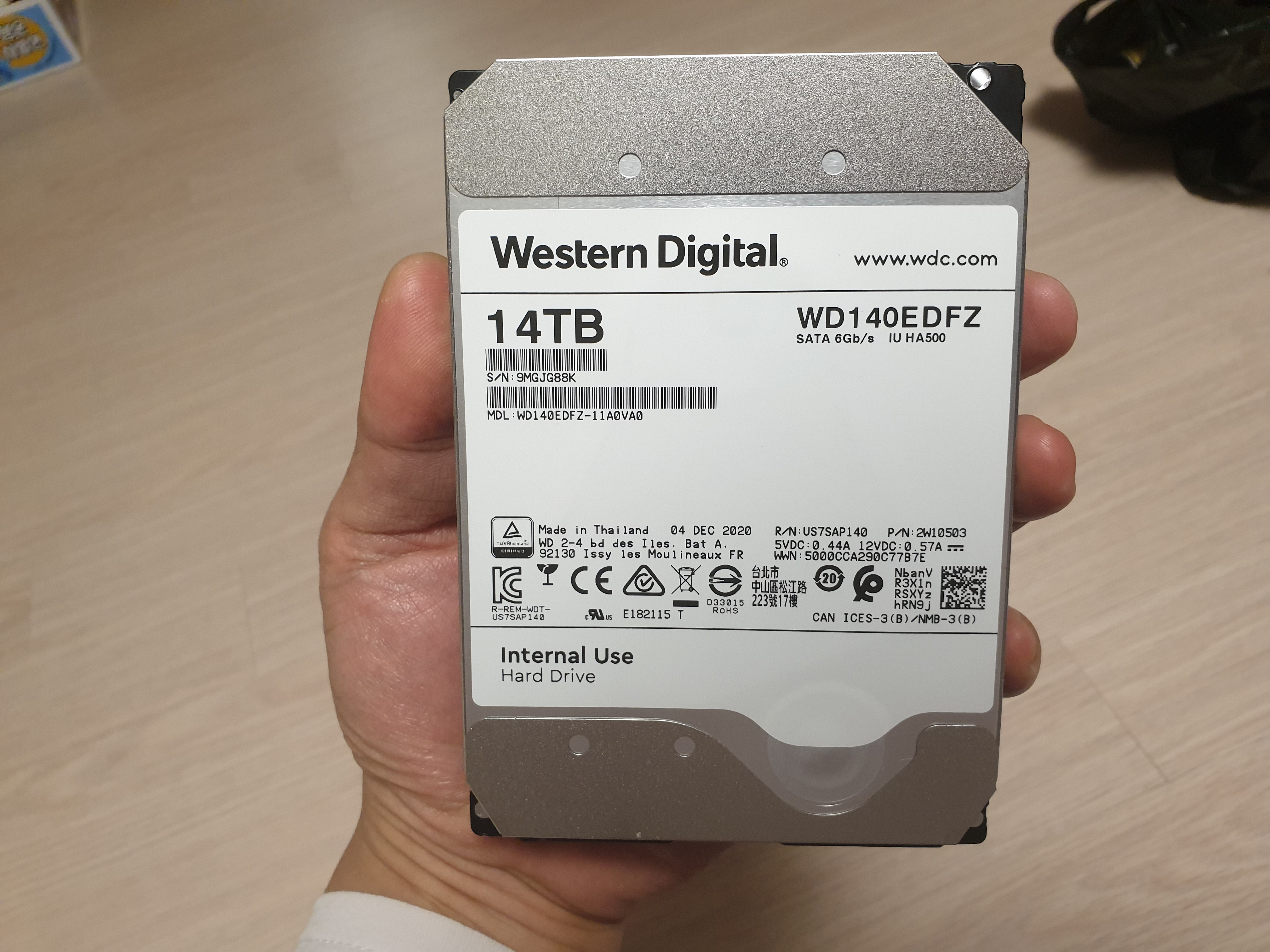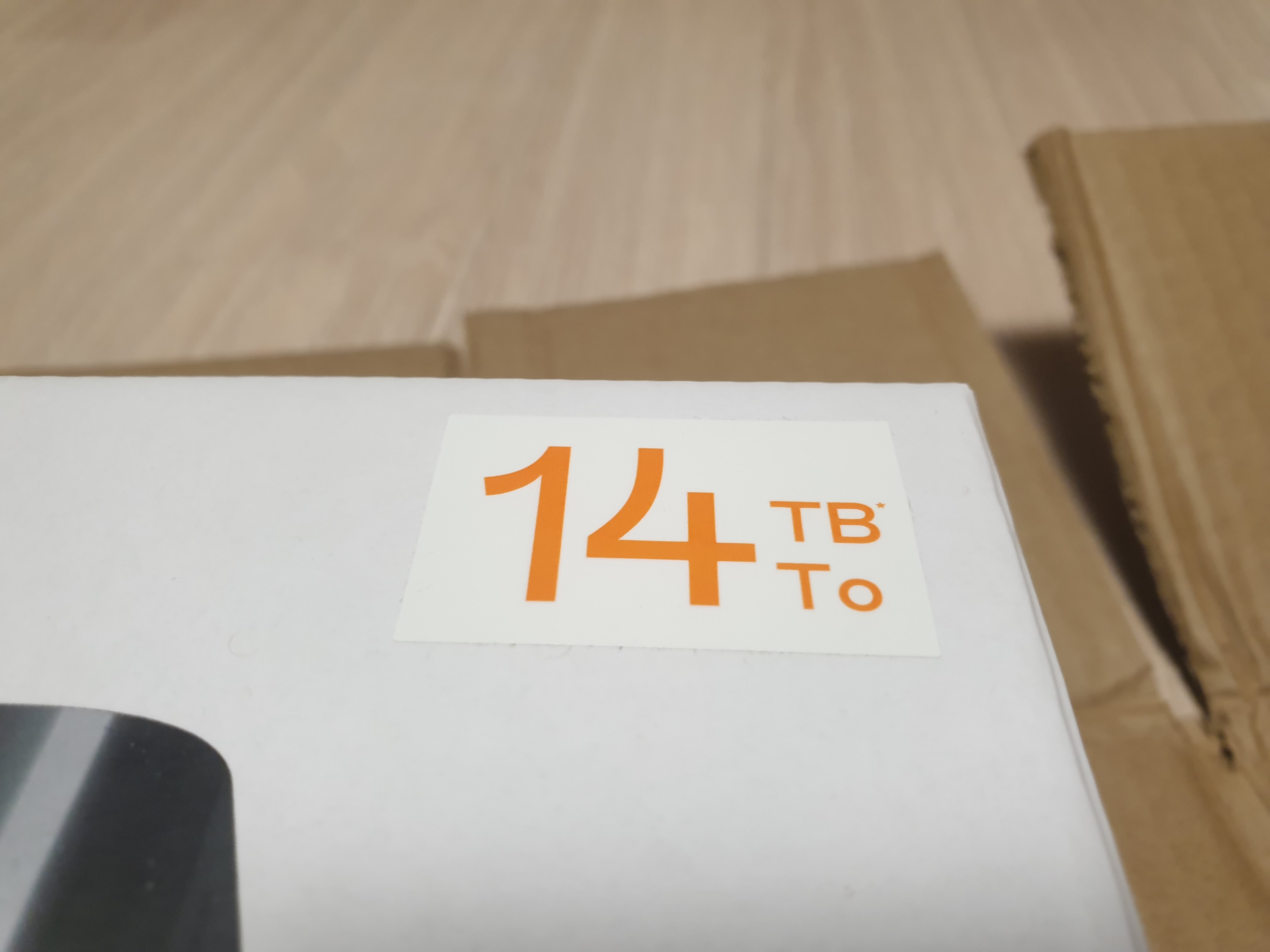 원래 10GB? 12GB 상품이 주였을 것이다. 그걸 14TB까지 확대하면서 박스는 그대로 쓰고 스티커만 붙였다.